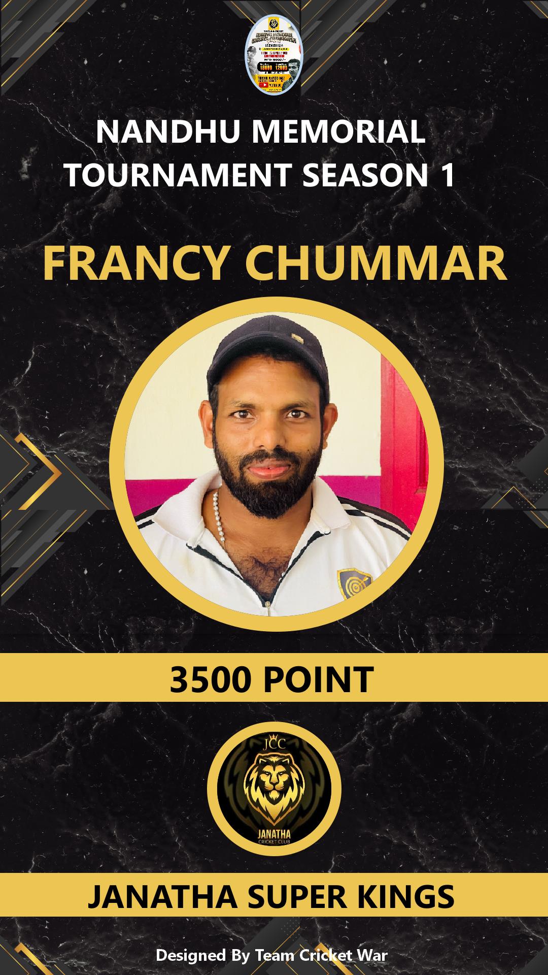ALLROUNDER, AGE : 36 CHEMBUCHIRA Bid Amount : 1000 Team : TITANS NANDIPULAM Download ID Card VIEW PROFILE |