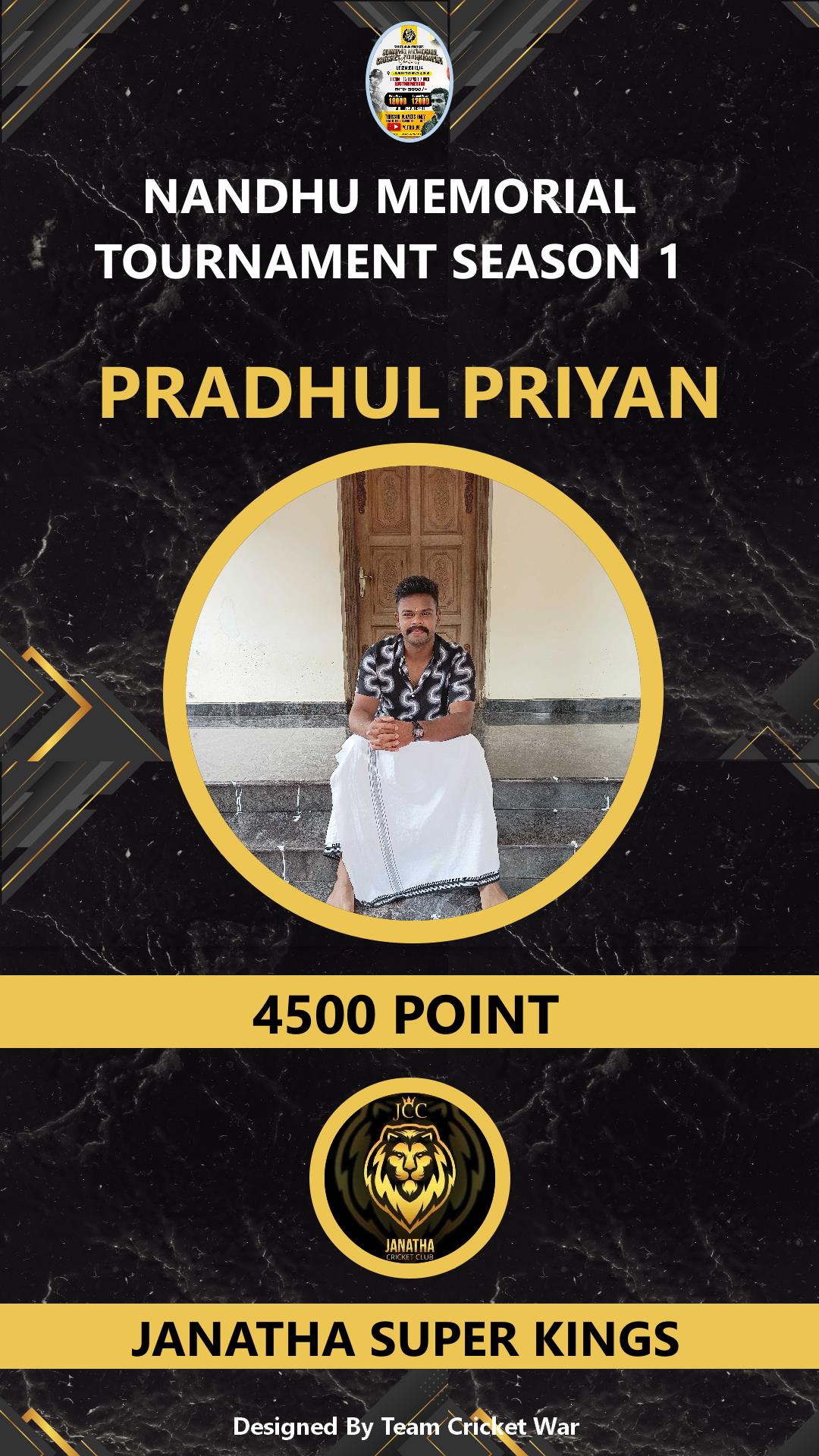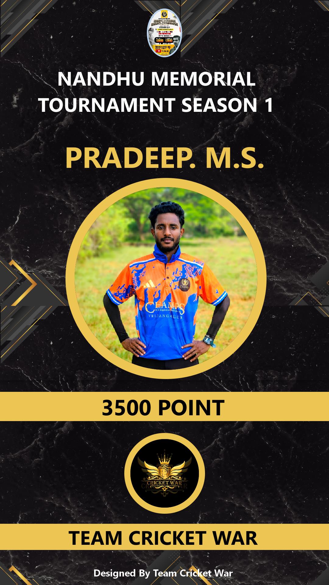 ALLROUNDER, AGE : 28 MUPLIYAM Bid Amount : 1000 Team : TITANS NANDIPULAM Download ID Card VIEW PROFILE |