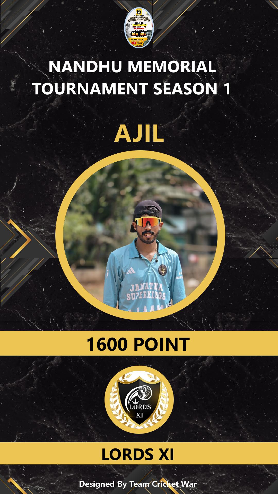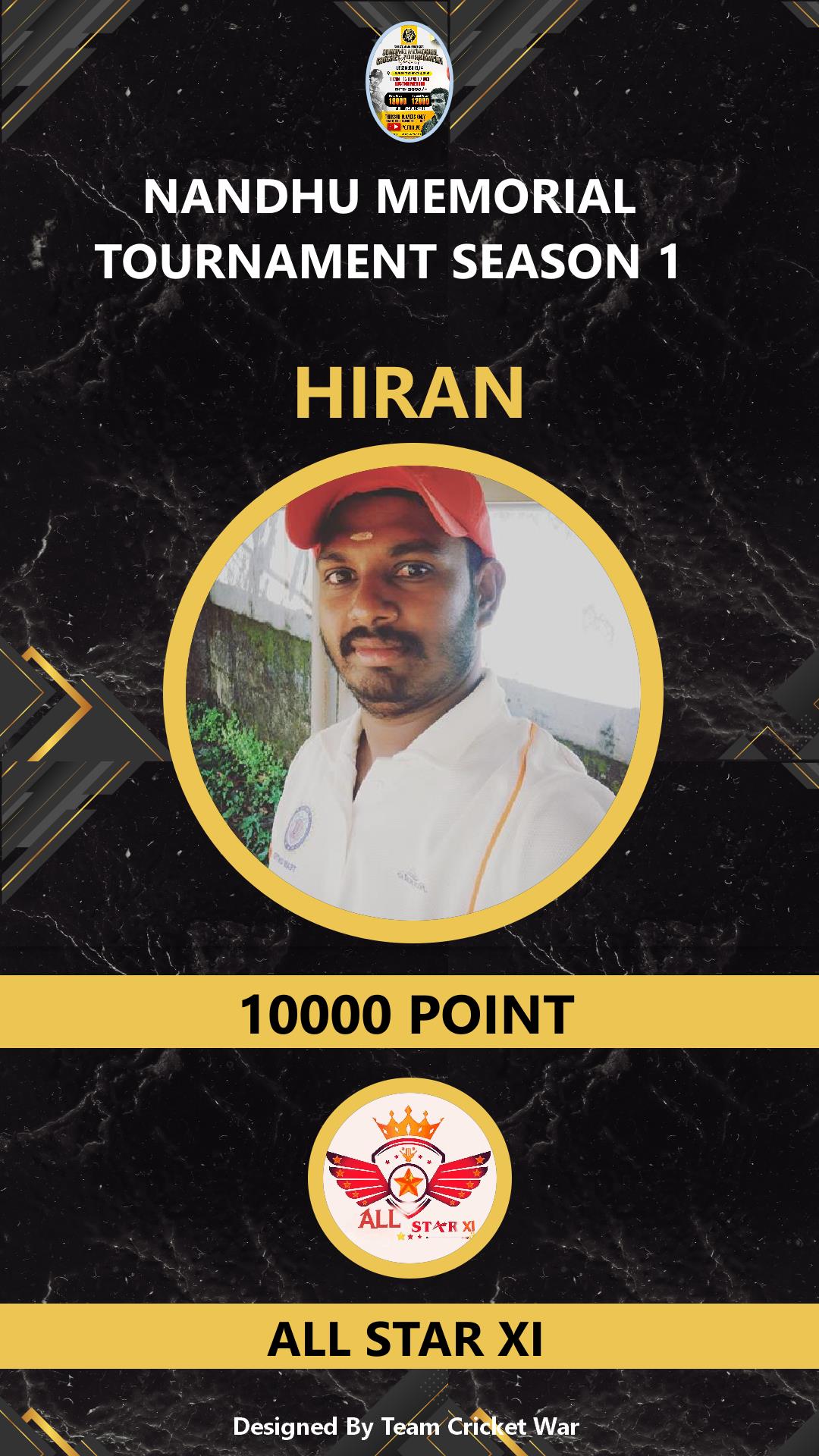 ALLROUNDER, AGE : 1 S N PURAM Bid Amount : 7500 Team : ALL STAR XI Download ID Card VIEW PROFILE |