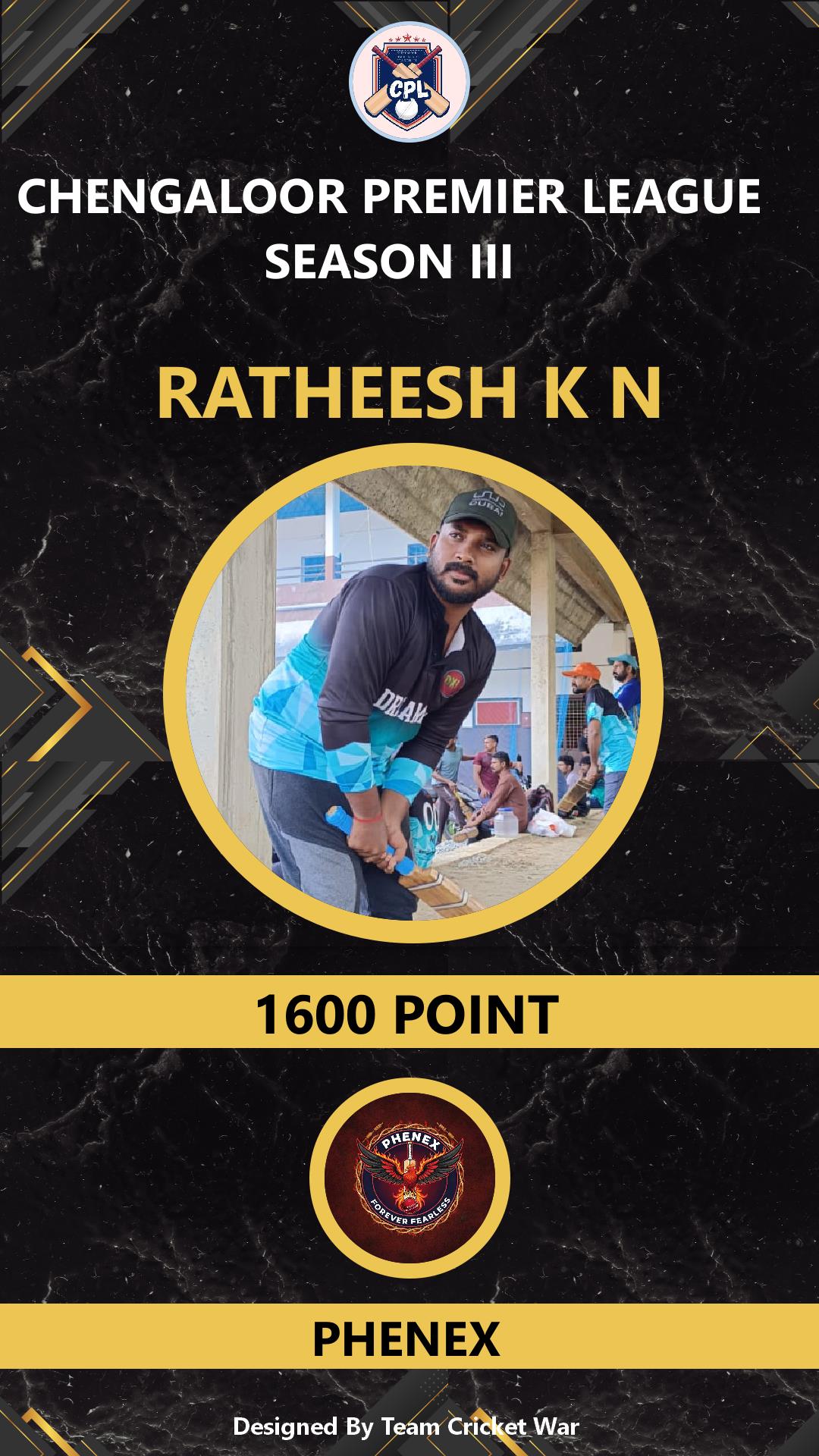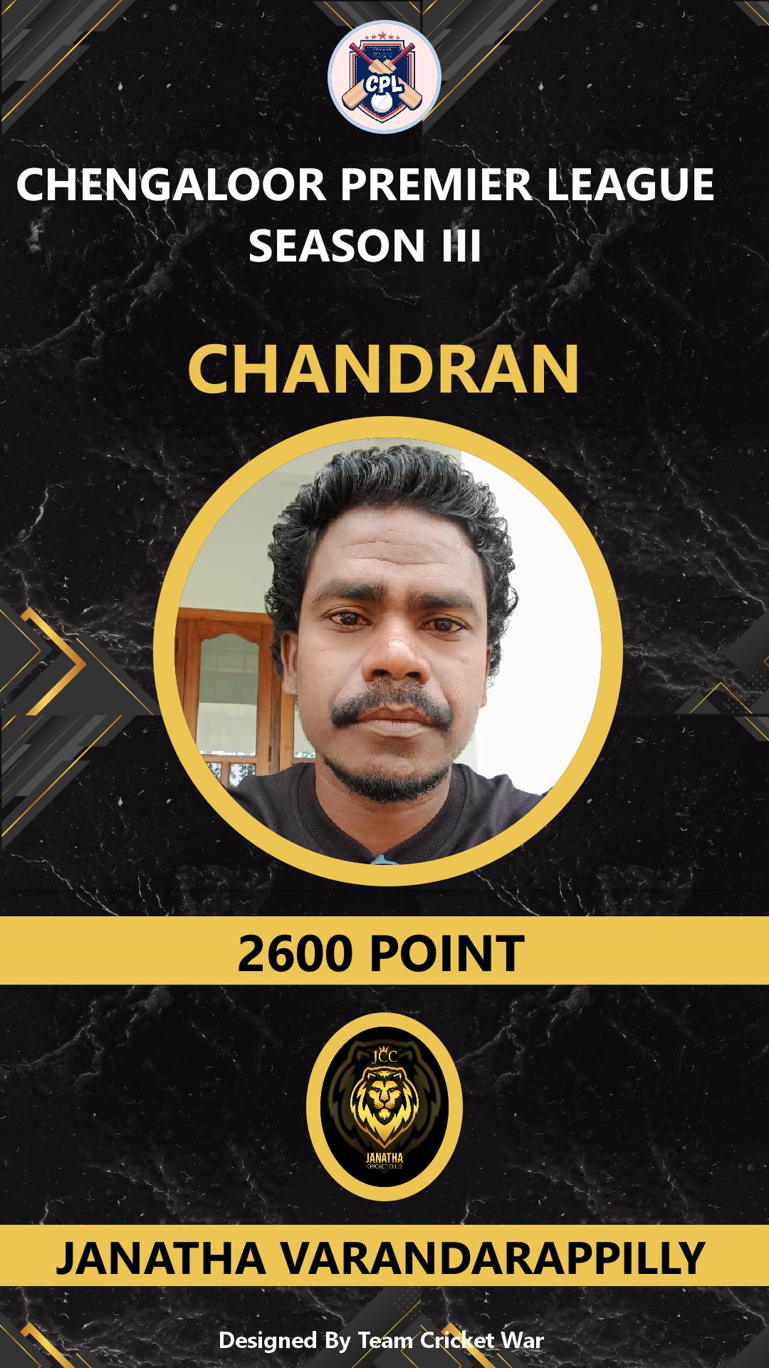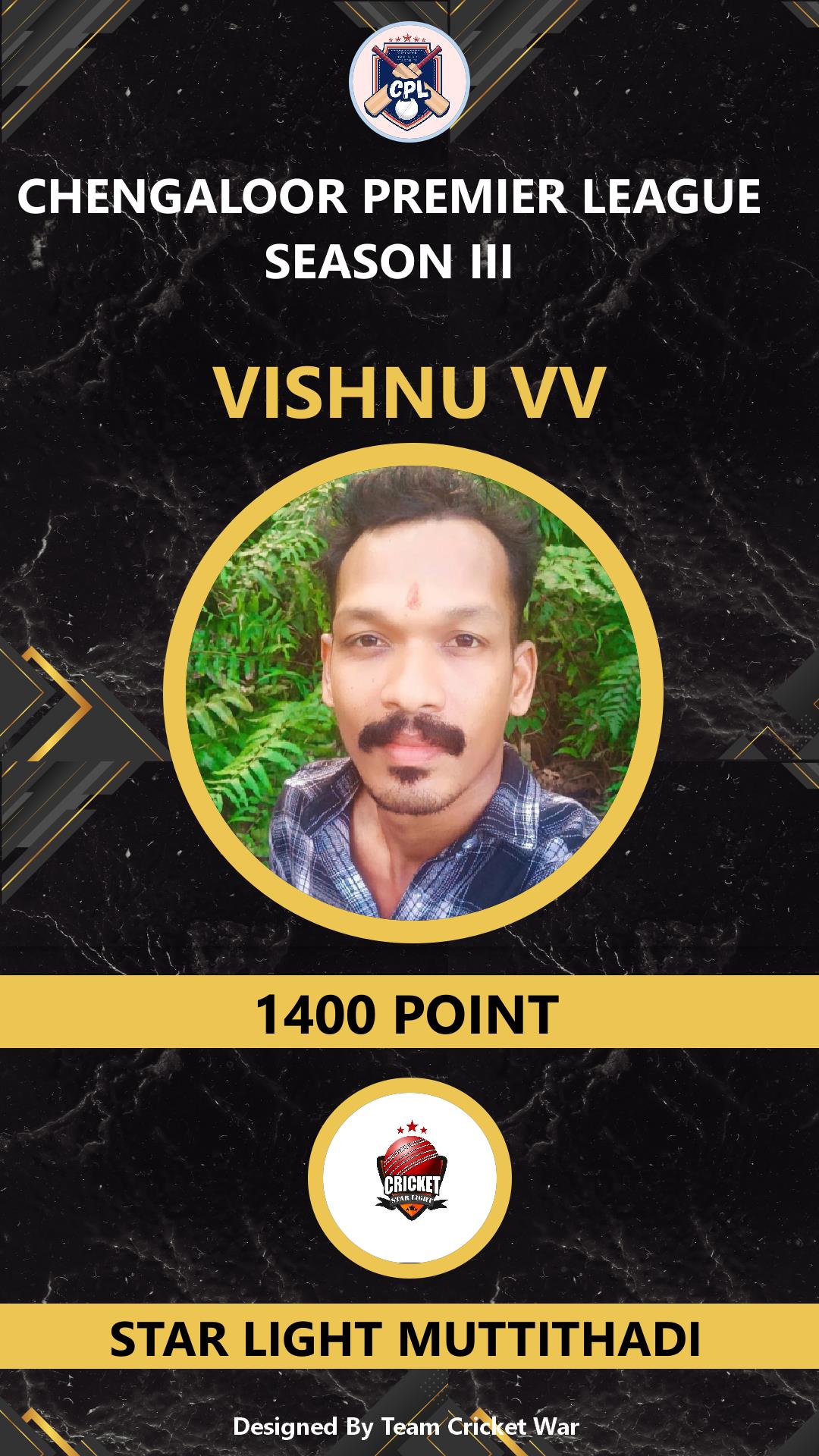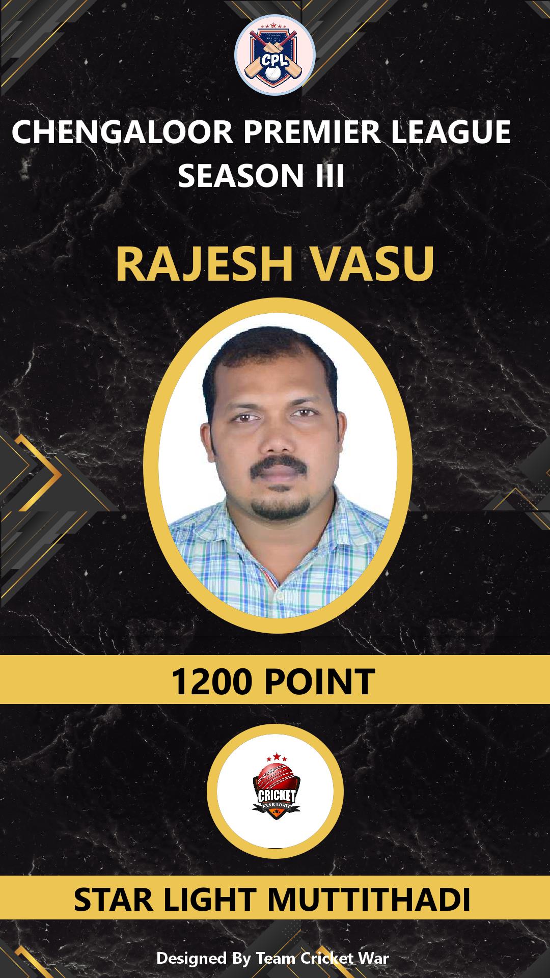 BATSMAN, AGE : 34 CHENGALOOR Bid Amount : 1400 Team : CRICKET WAR Download ID Card VIEW PROFILE |