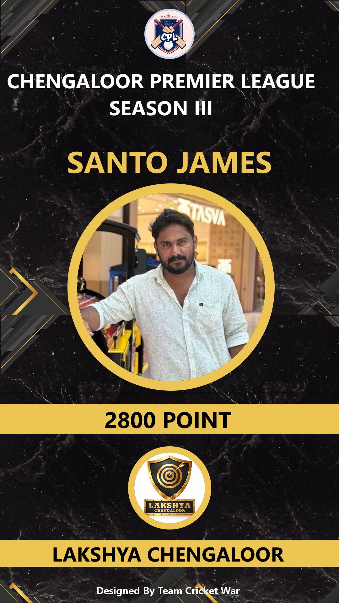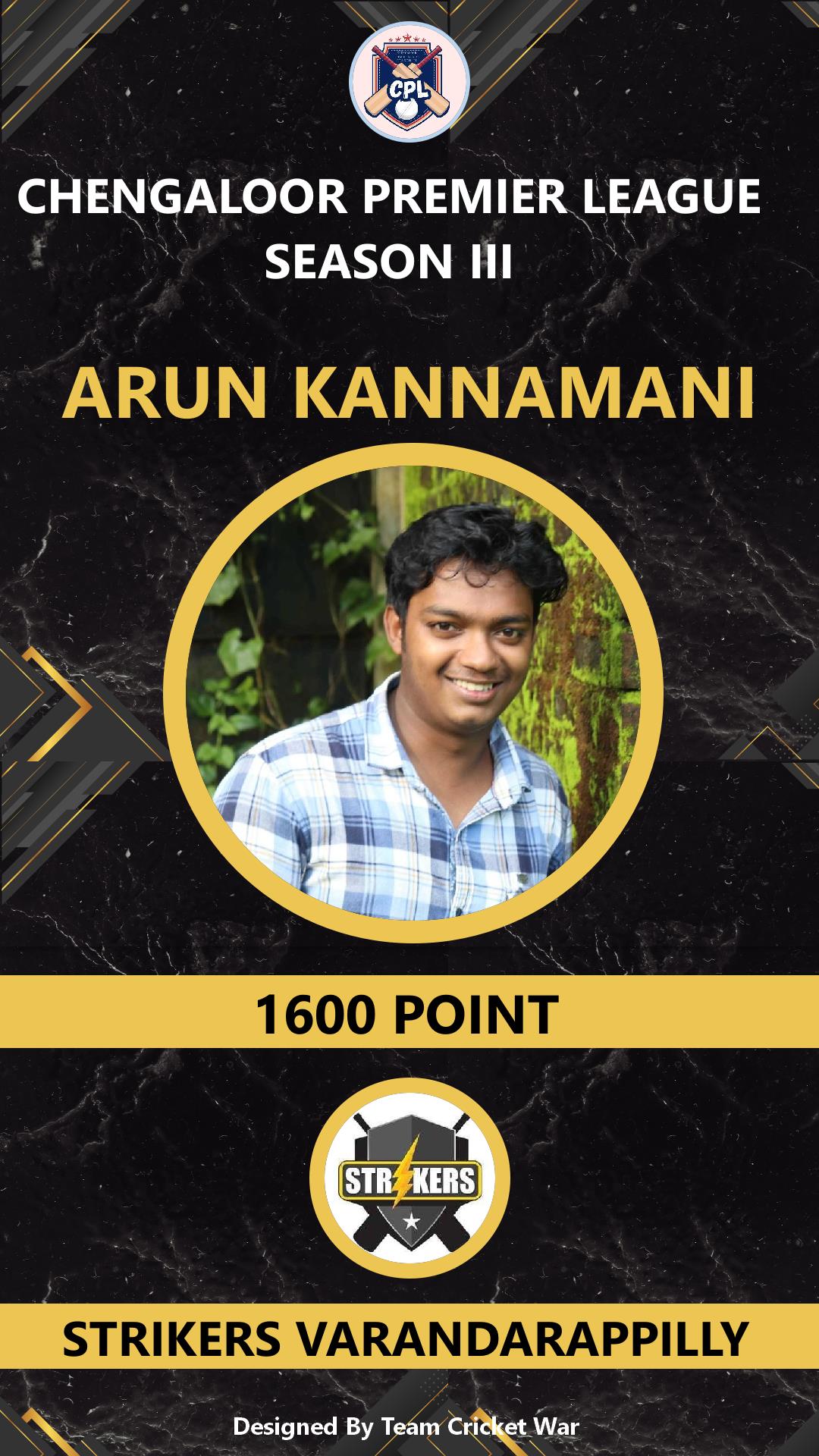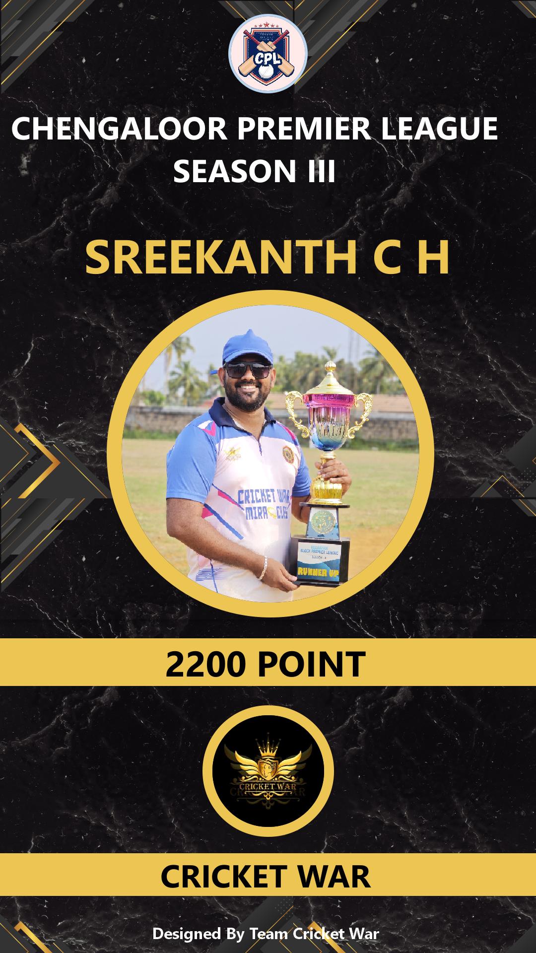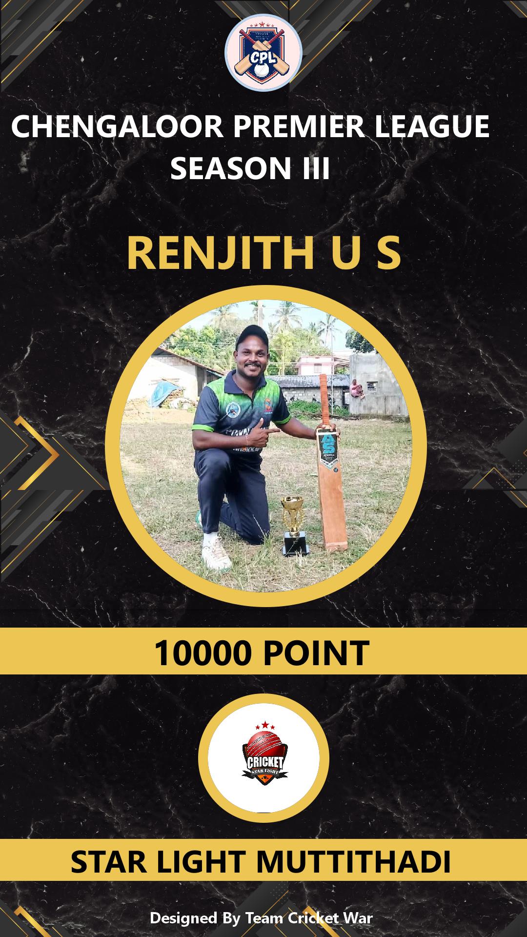 BATSMAN, AGE : 34 CHENGALOOR Bid Amount : 1400 Team : CRICKET WAR Download ID Card VIEW PROFILE |