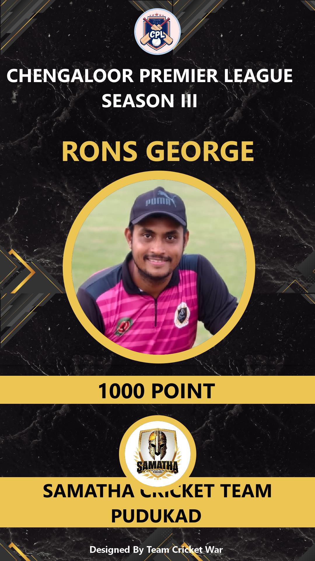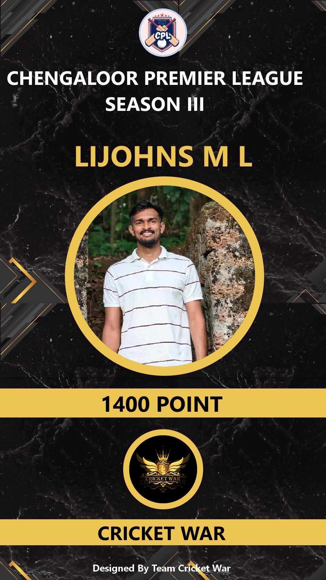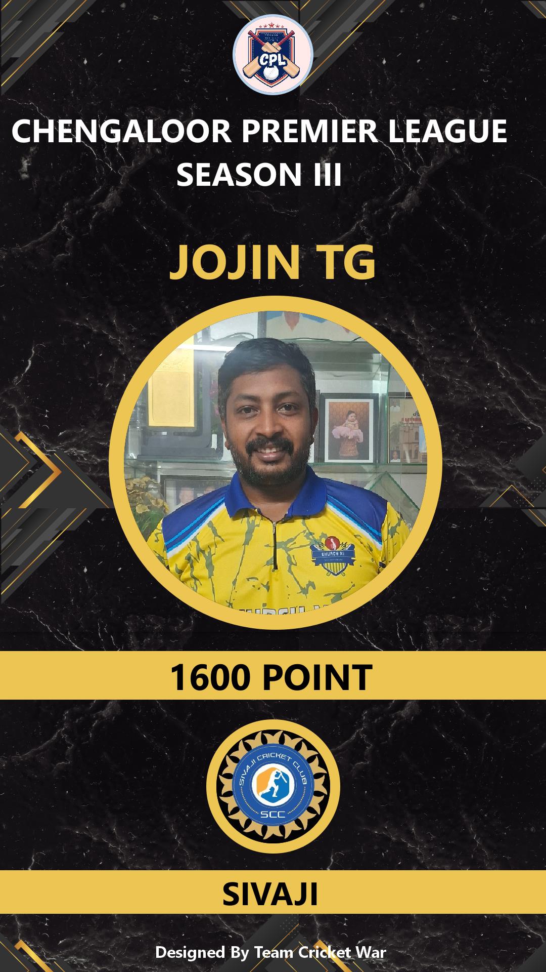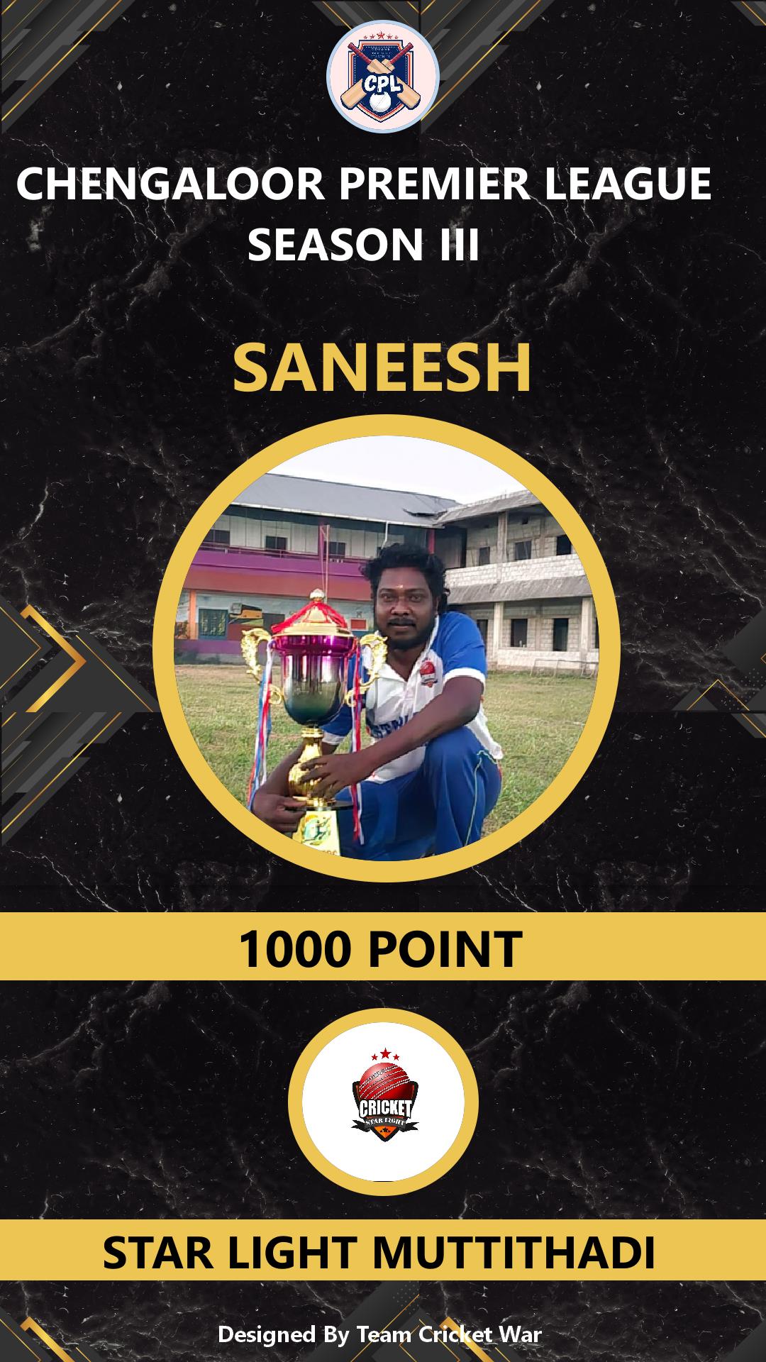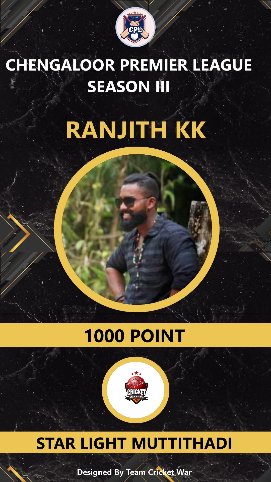 BATSMAN, AGE : 34 CHENGALOOR Bid Amount : 1400 Team : CRICKET WAR Download ID Card VIEW PROFILE |
