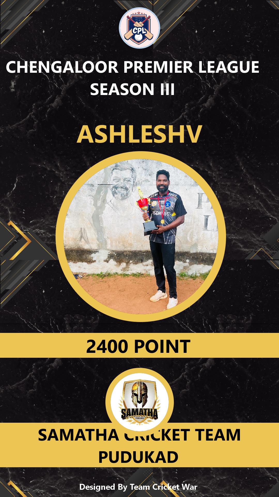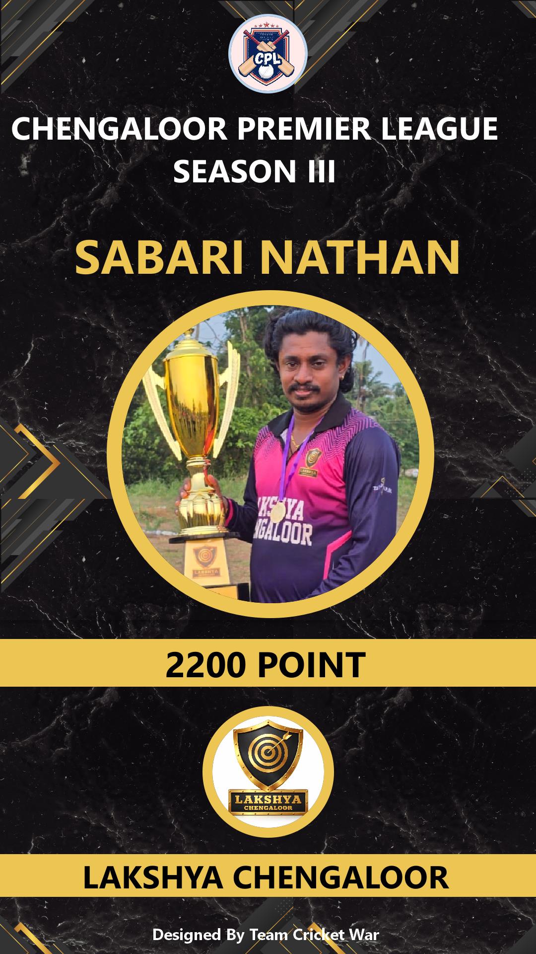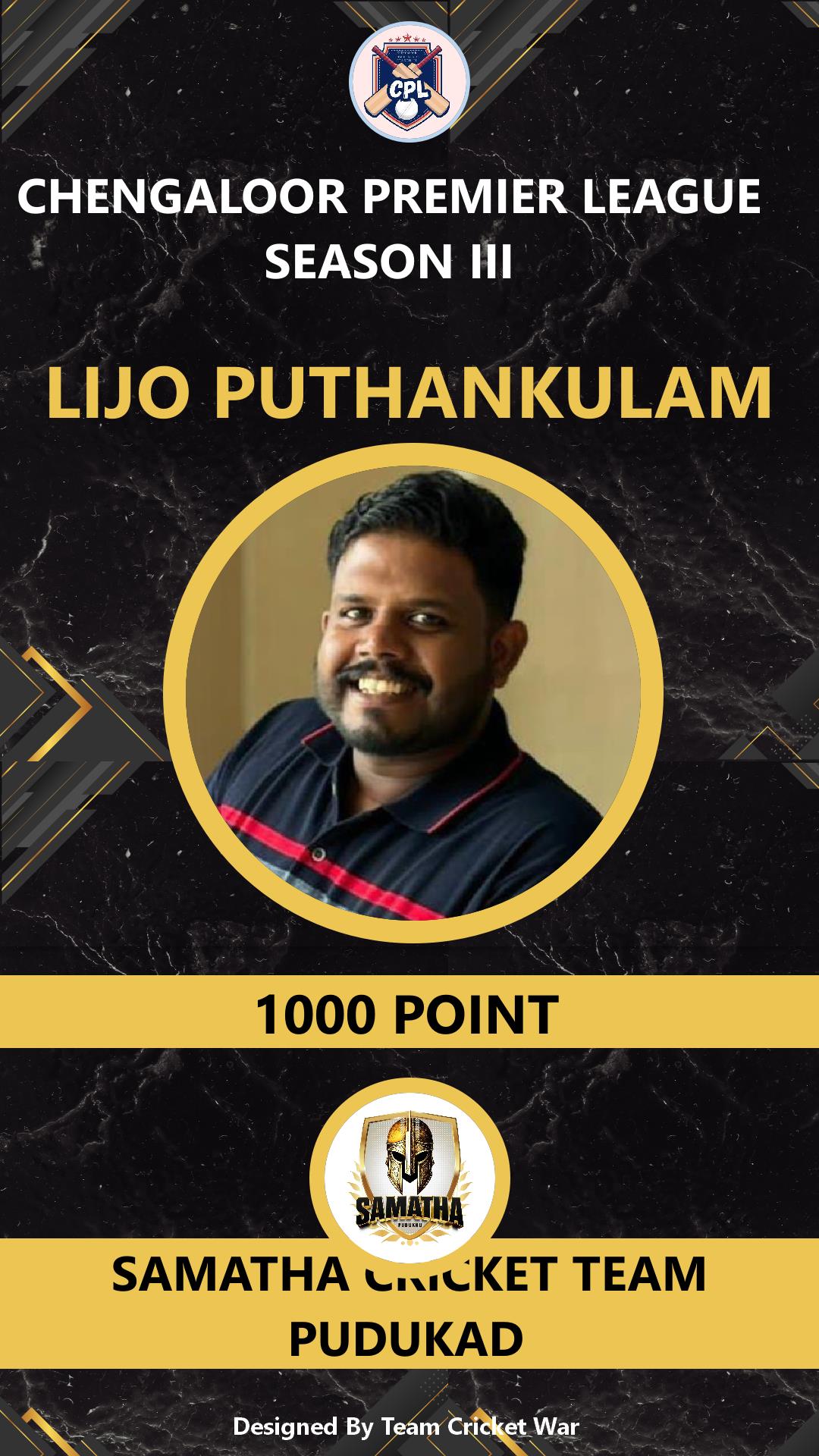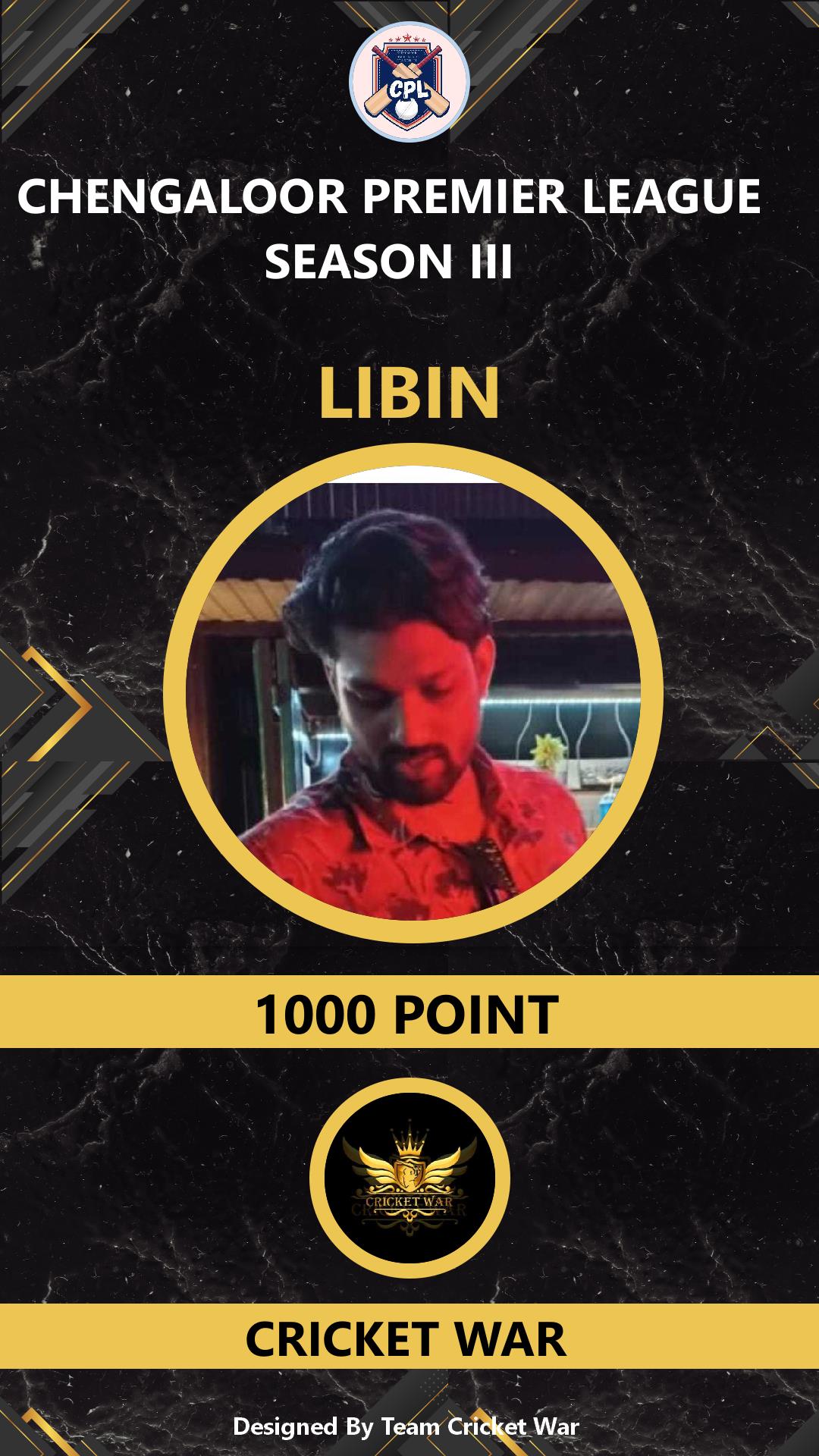 BATSMAN, AGE : 34 CHENGALOOR Bid Amount : 1400 Team : CRICKET WAR Download ID Card VIEW PROFILE |