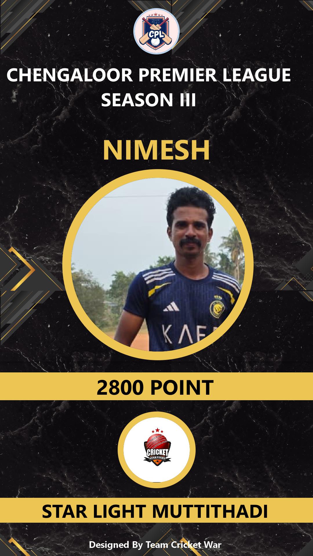 BATTING ALLROUNDER, AGE : 24 MUTTITHADI Bid Amount : 2400 Team : STAR LIGHT MUTTITHADI Download ID Card VIEW PROFILE |