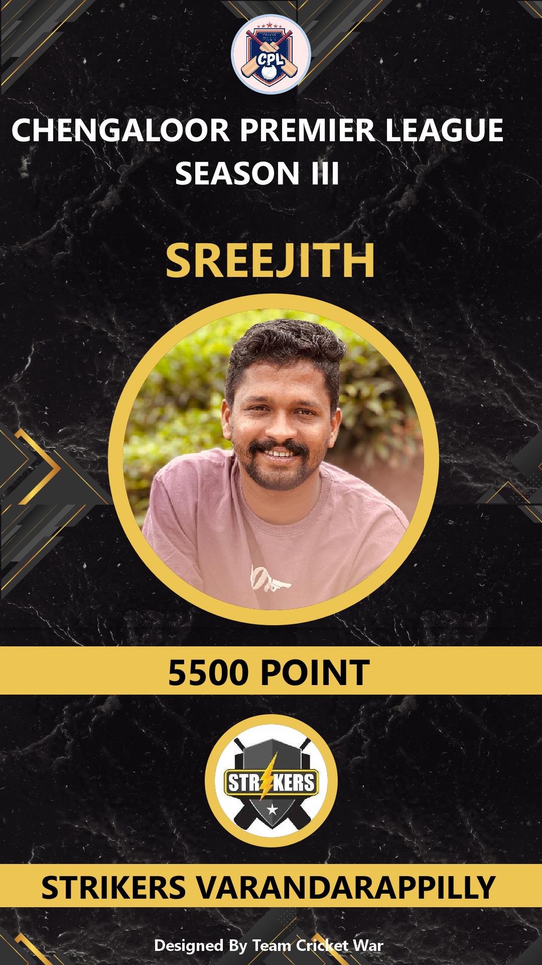 BOWLING ALLROUNDER, AGE : 35 VARANDARAPPILLY Bid Amount : 10000 Team : STRIKERS VARANDARAPPILLY Download ID Card VIEW PROFILE |
