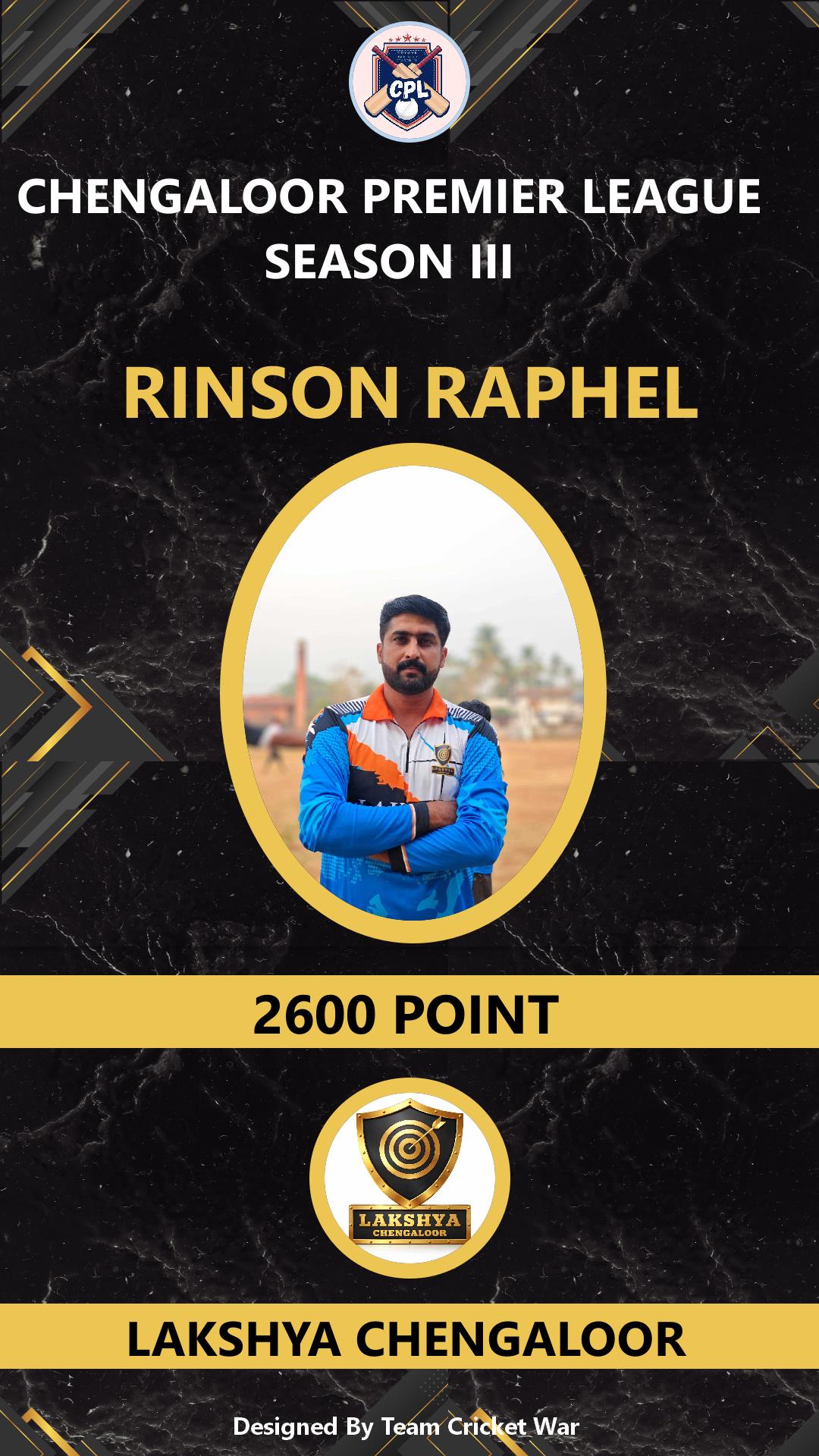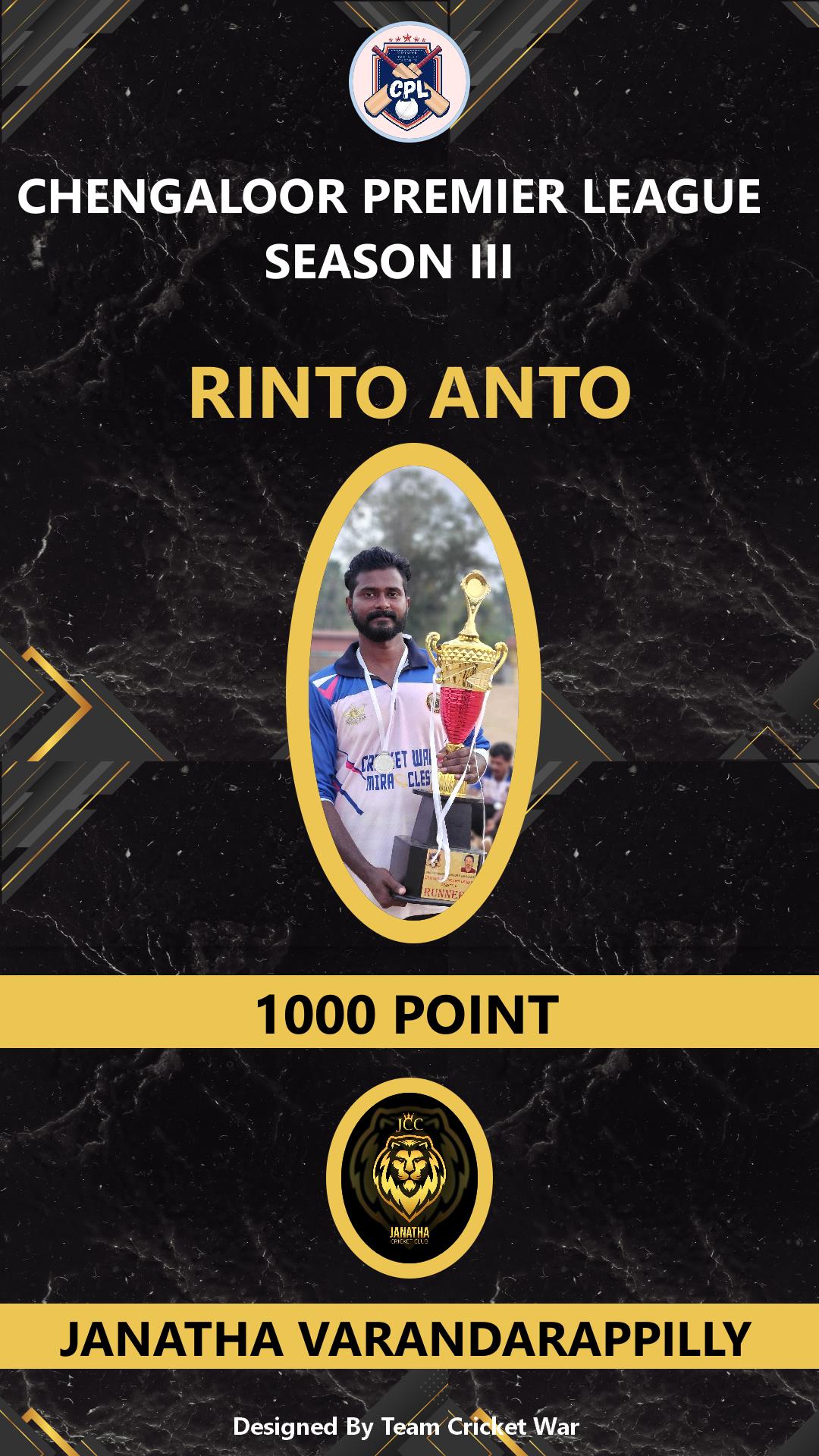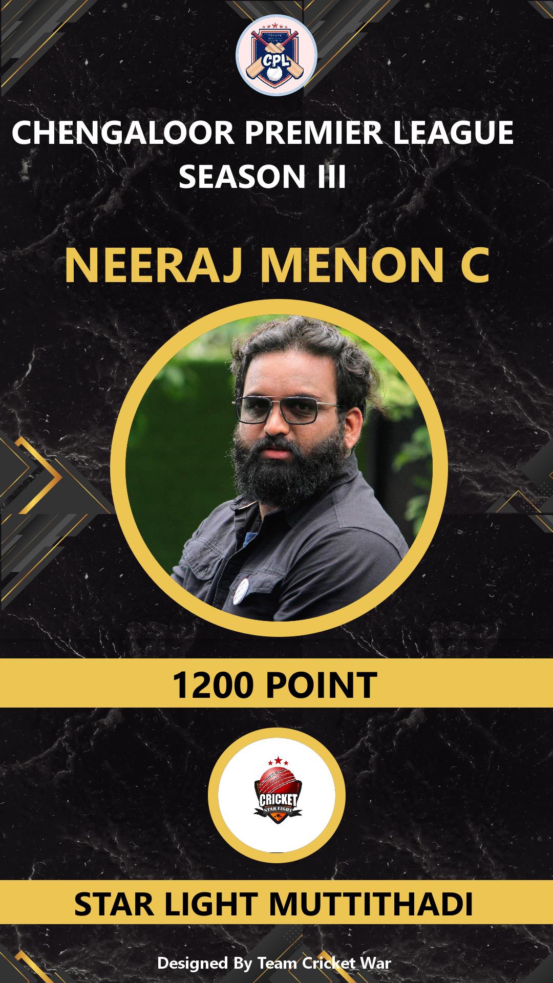 BATSMAN, AGE : 31 VARANDARAPPILLY Bid Amount : 1400 Team : CRICKET WAR Download ID Card VIEW PROFILE |