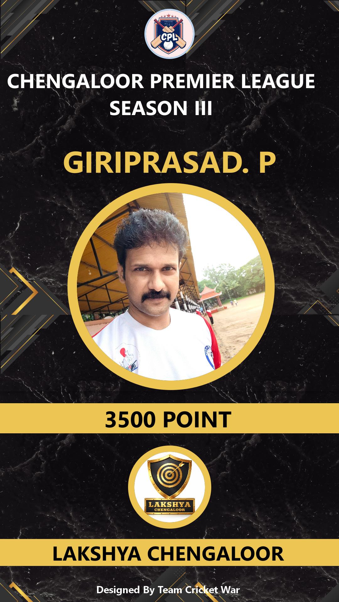 ALLROUNDER, AGE : 36 CHENGALOOR Bid Amount : 2800 Team : LAKSHYA CHENGALOOR Download ID Card VIEW PROFILE |