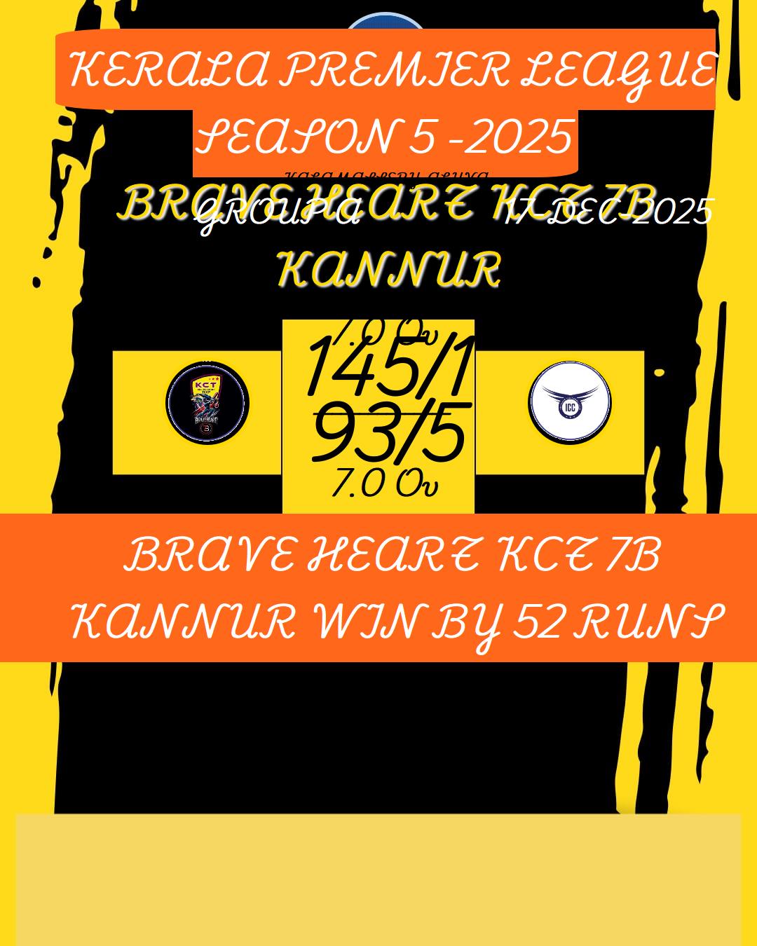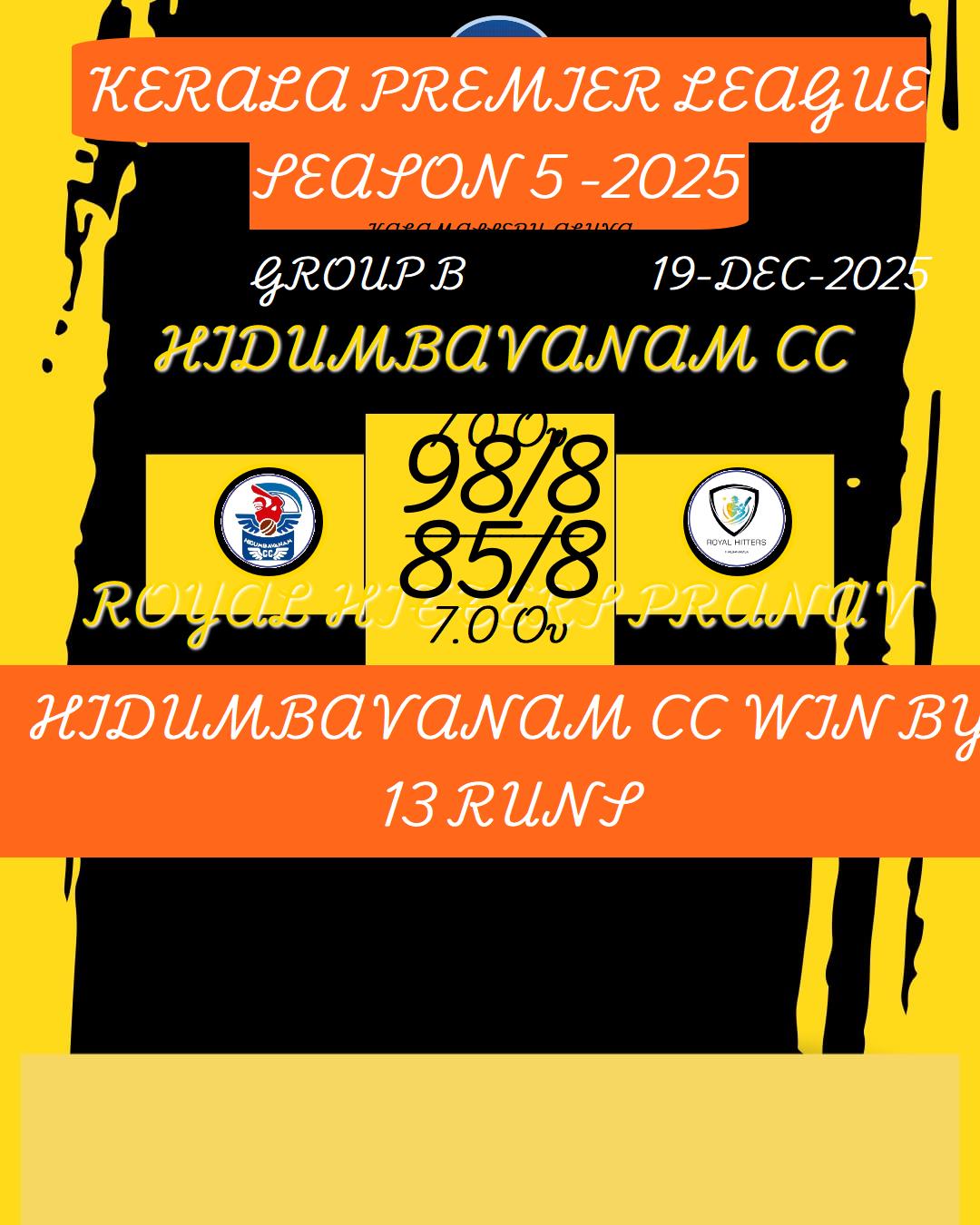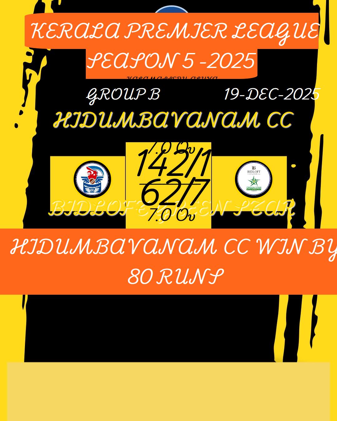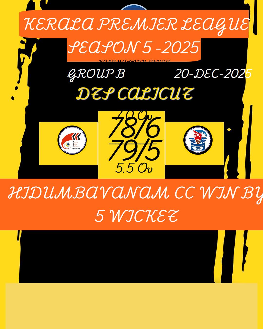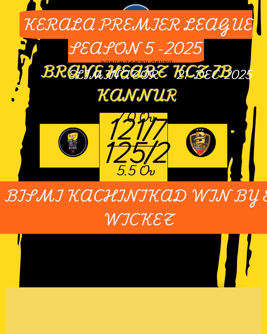 KERALA PREMIER LEAGUE SEASON 5 -2025 MATCHES