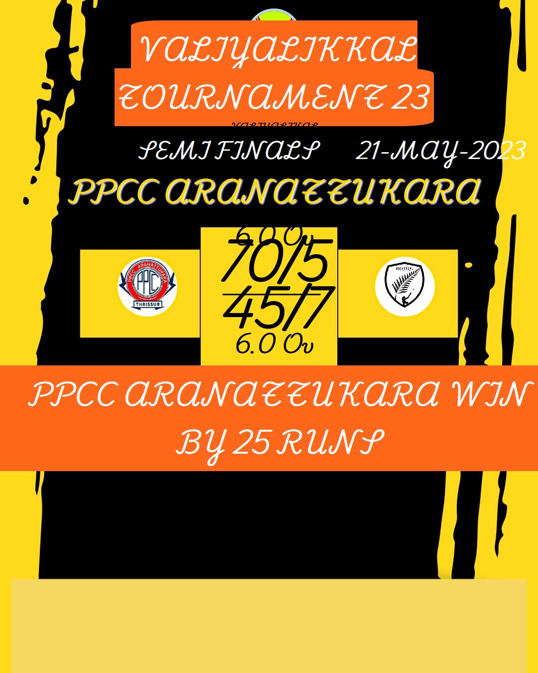 PPCC ARANATTUKARA WIN BY 25 RUNS