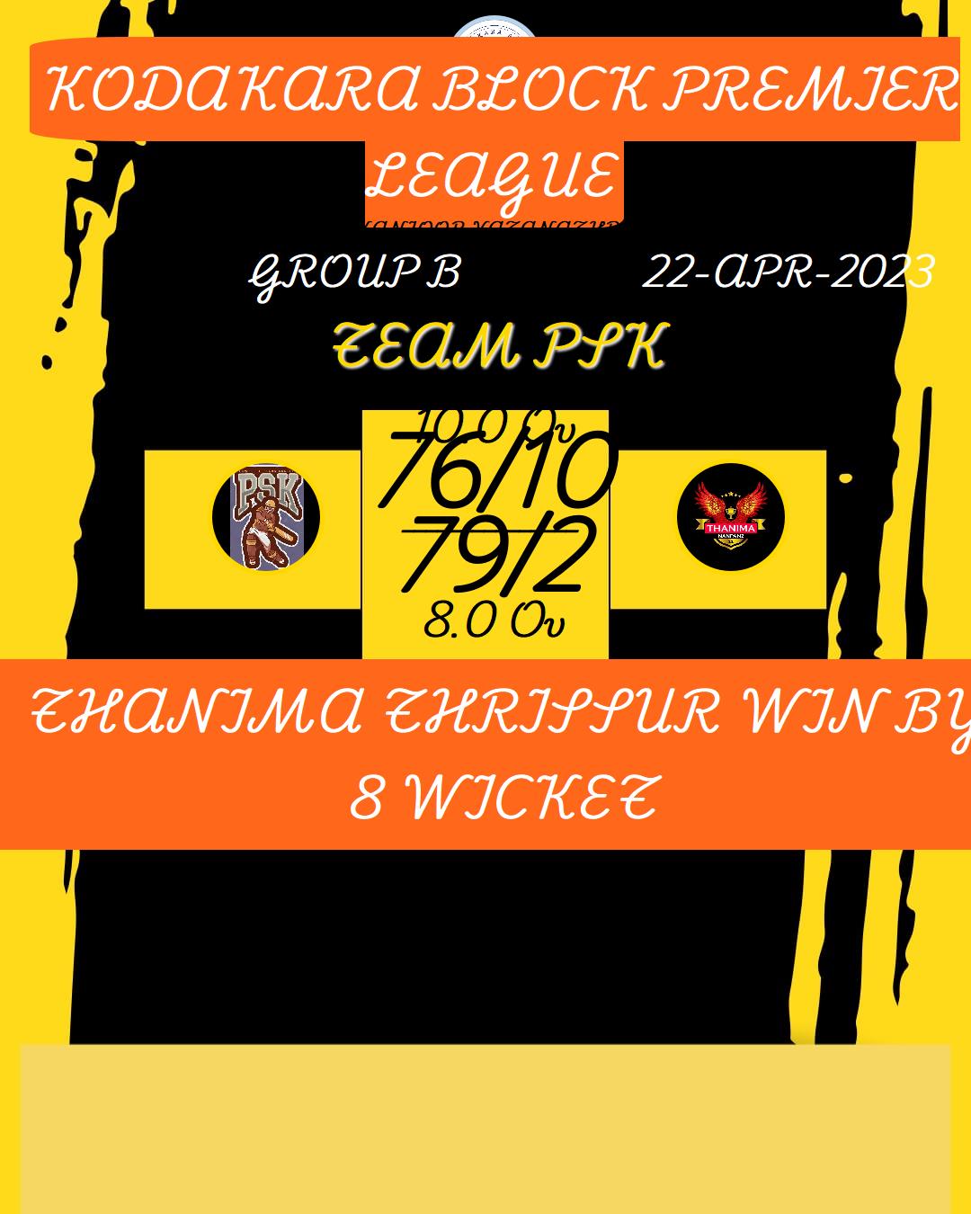 THANIMA THRISSUR WIN BY 8 WICKET