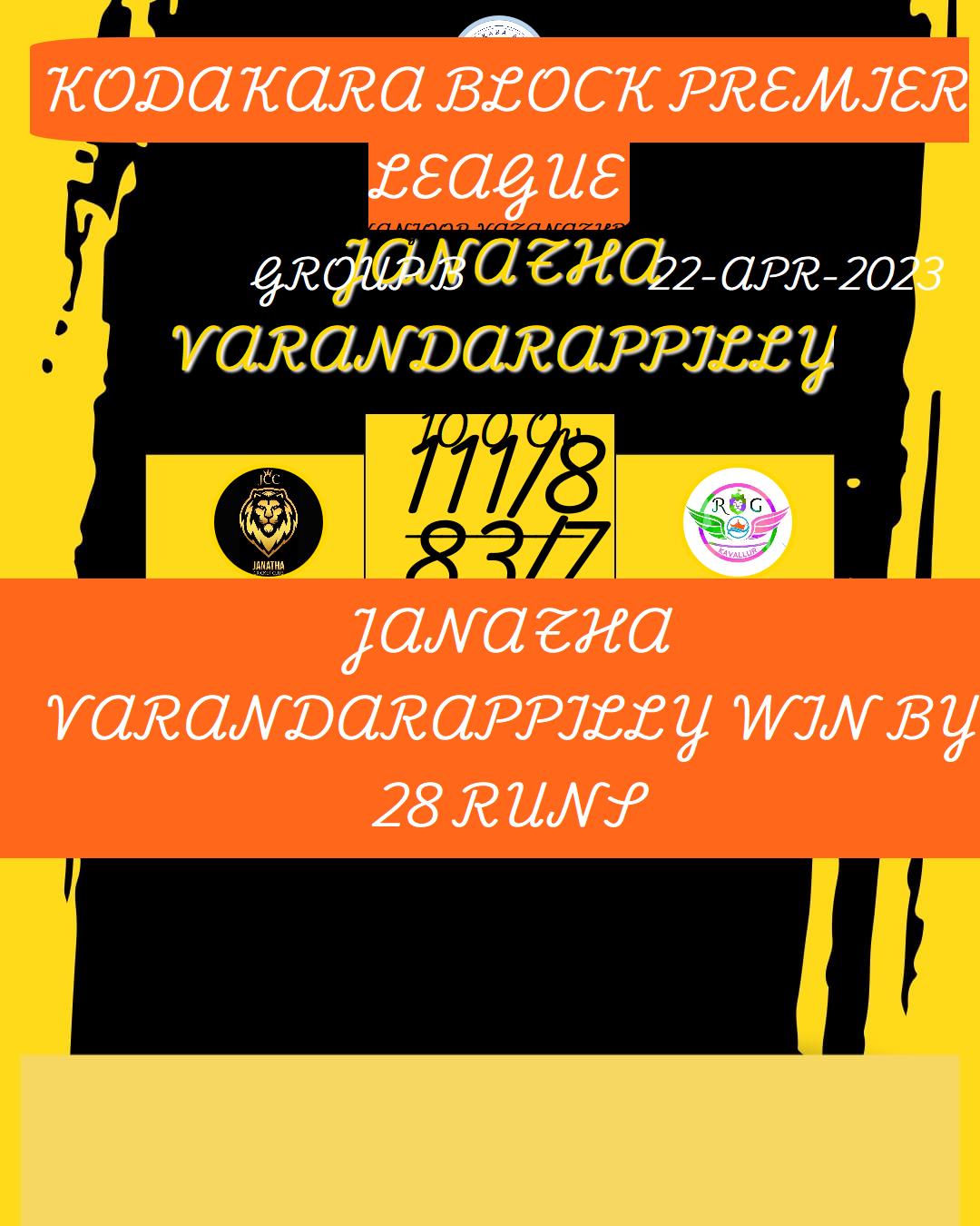 JANATHA VARANDARAPPILLY WIN BY 28 RUNS