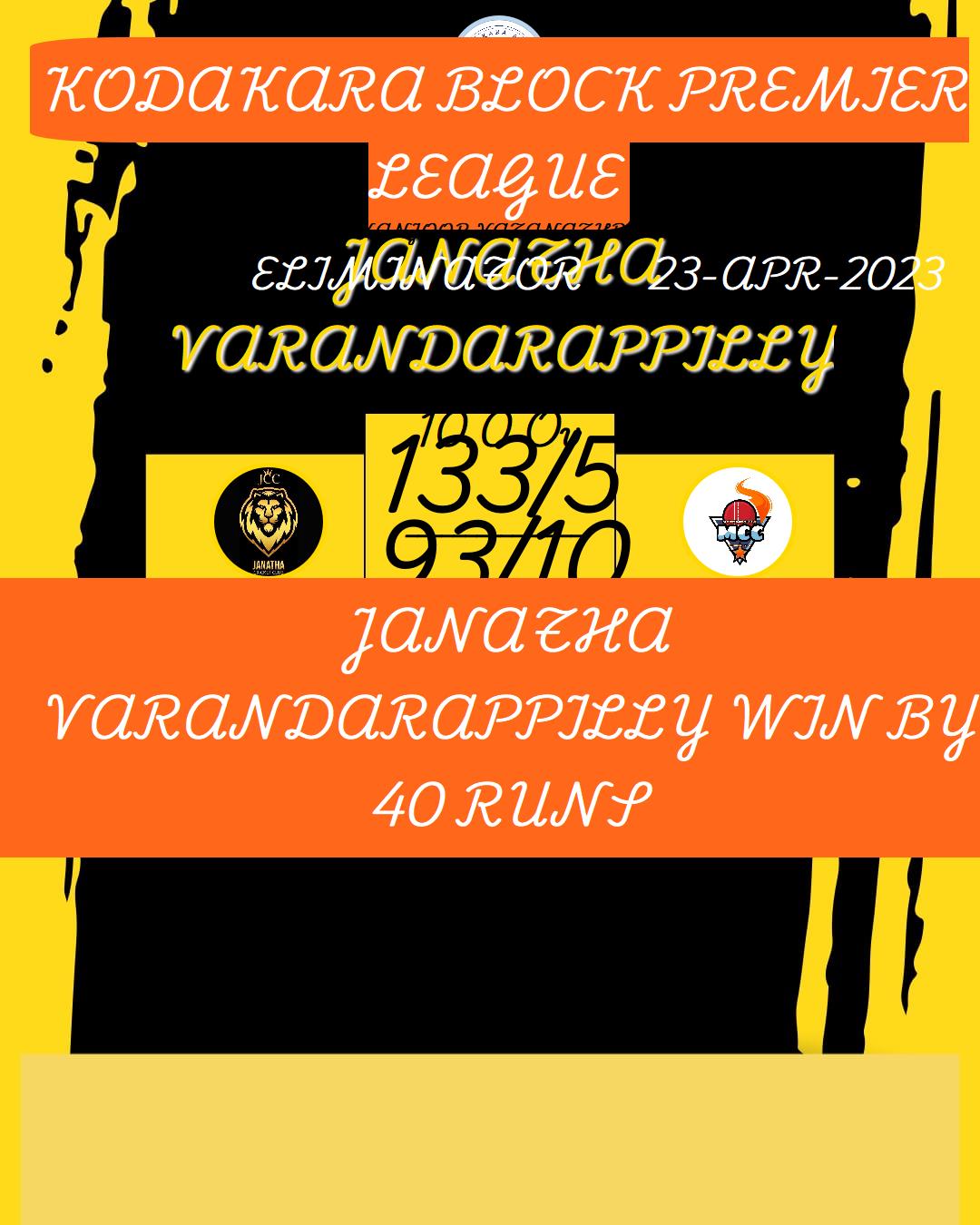 JANATHA VARANDARAPPILLY WIN BY 40 RUNS