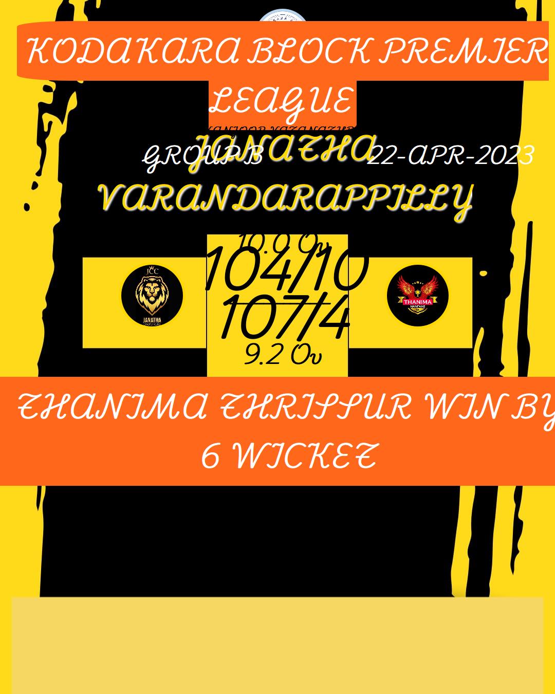 THANIMA THRISSUR WIN BY 6 WICKET