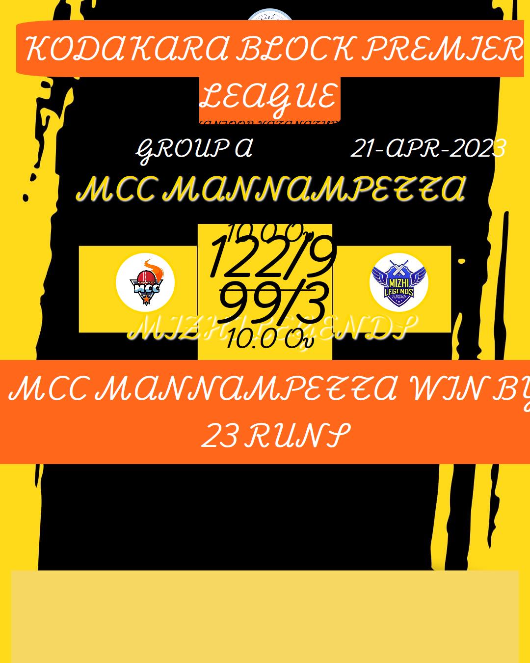 MCC MANNAMPETTA WIN BY 23 RUNS