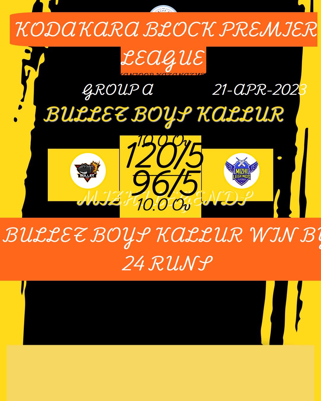 BULLET BOYS KALLUR WIN BY 24 RUNS