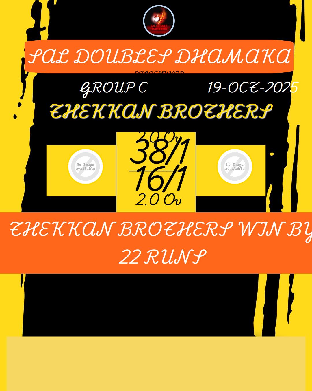 THEKKAN BROTHERS WIN BY 22 RUNS