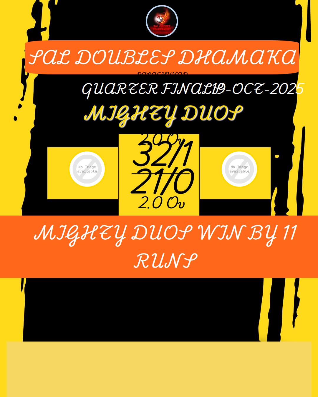 MIGHTY DUOS WIN BY 11 RUNS