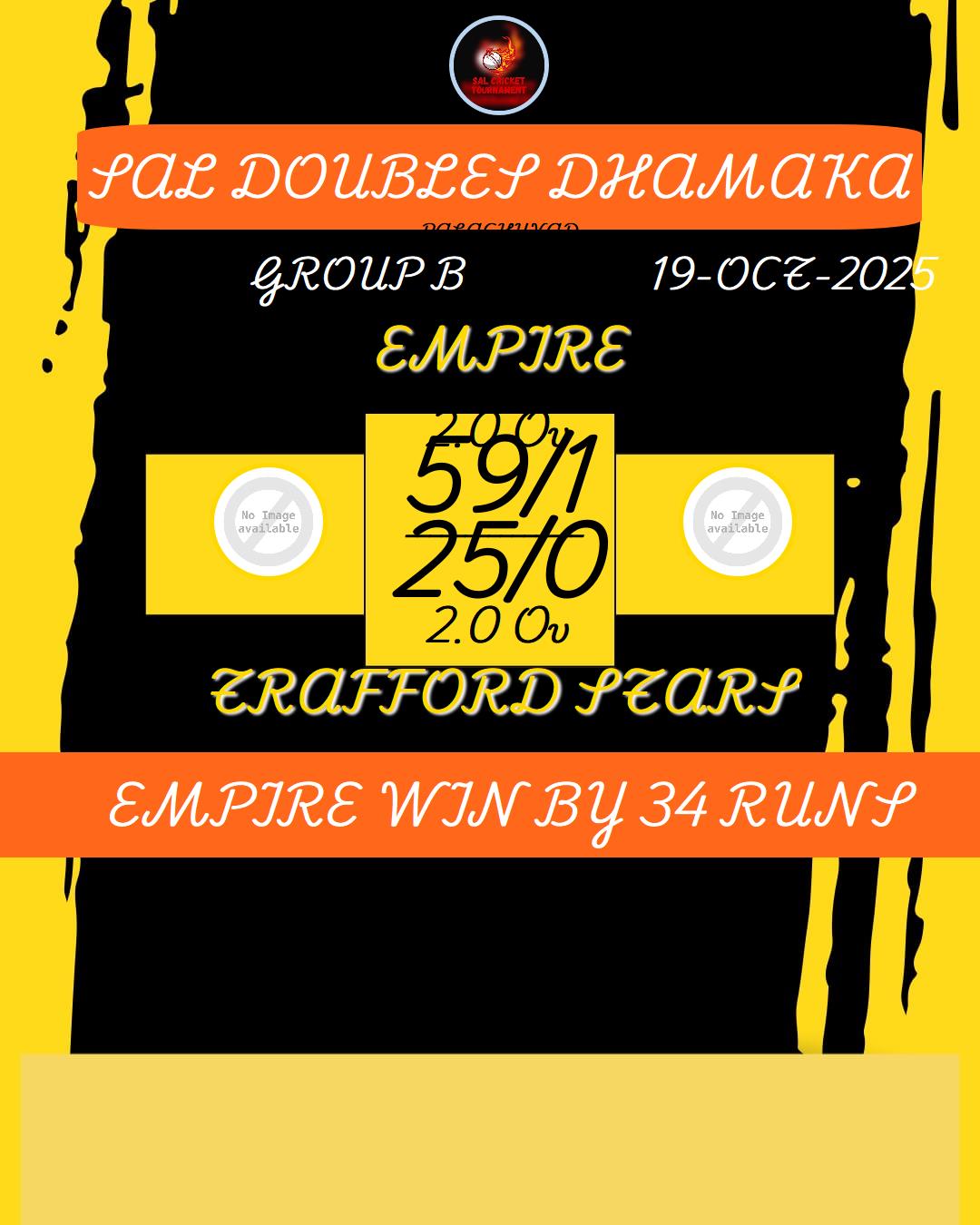 EMPIRE WIN BY 34 RUNS