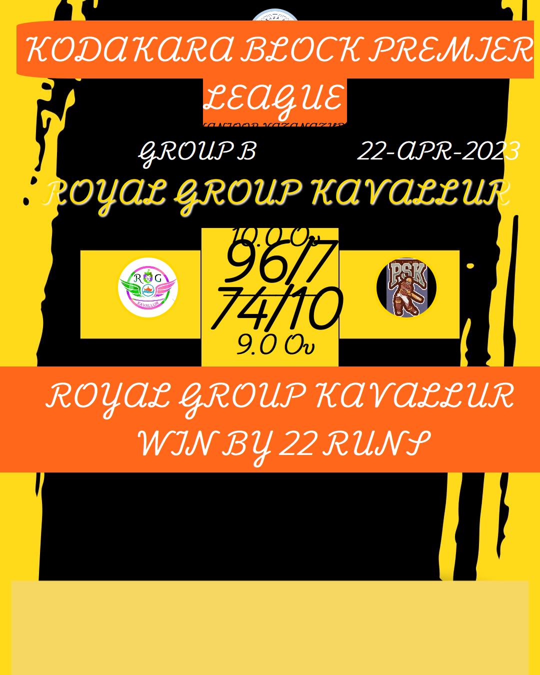 ROYAL GROUP KAVALLUR WIN BY 22 RUNS
