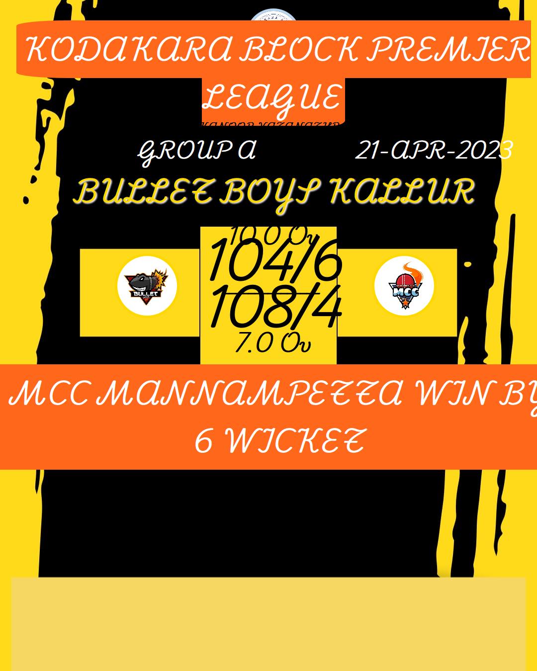 MCC MANNAMPETTA (KODAKARA BLOCK PREMIER LEAGUE) MATCHES