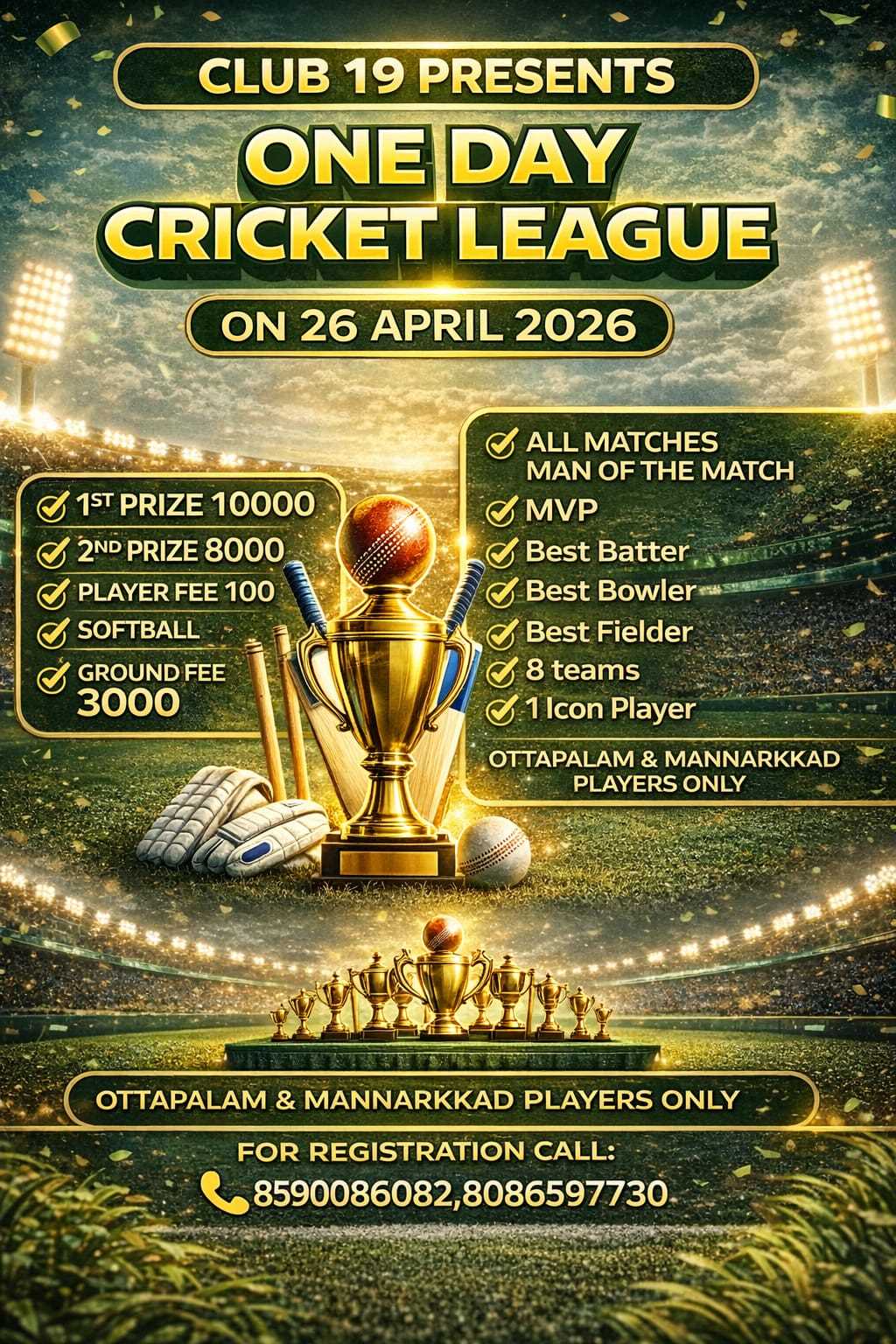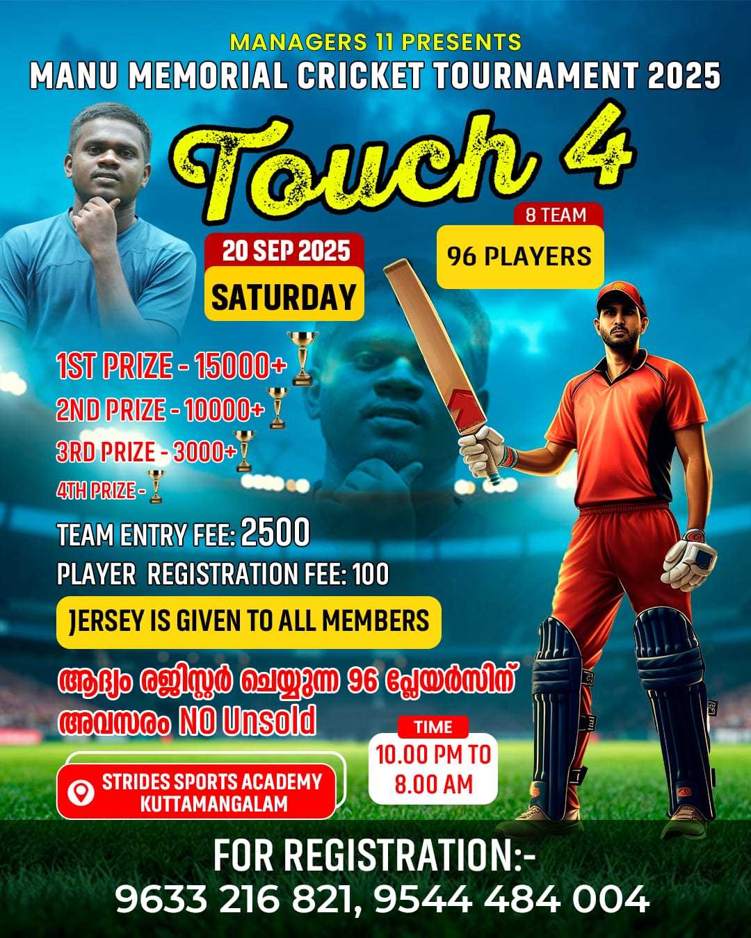 ALAGAPPA CRICKET ACADAMEY KANJOOR, 26-APR-2025 to 15-APR-2025 -