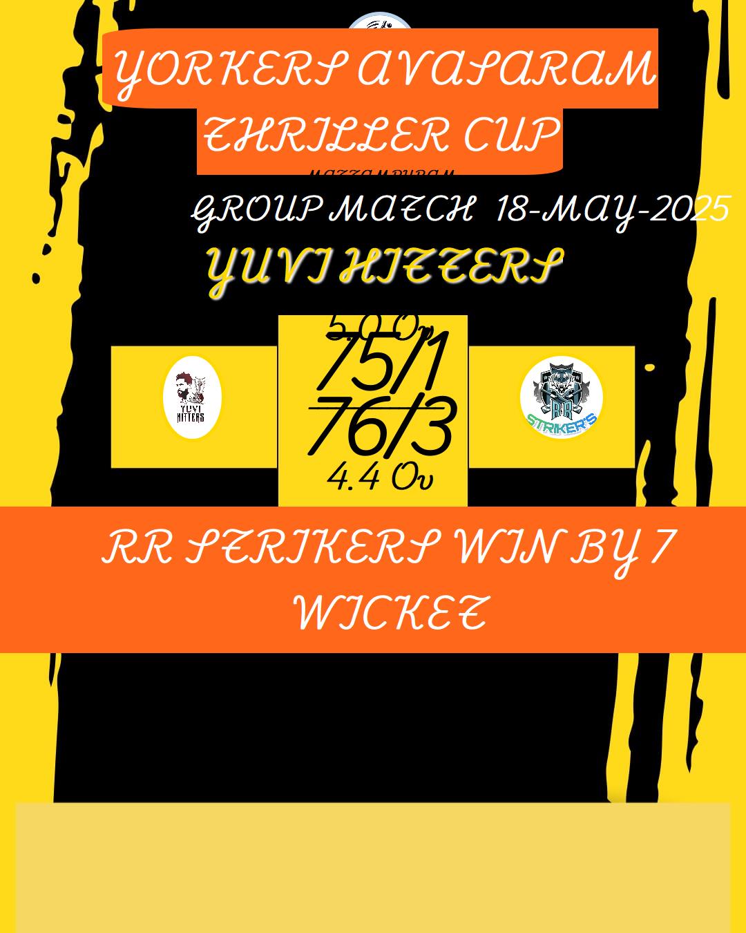 YORKERS AVASARAM THRILLER CUP MATCHES