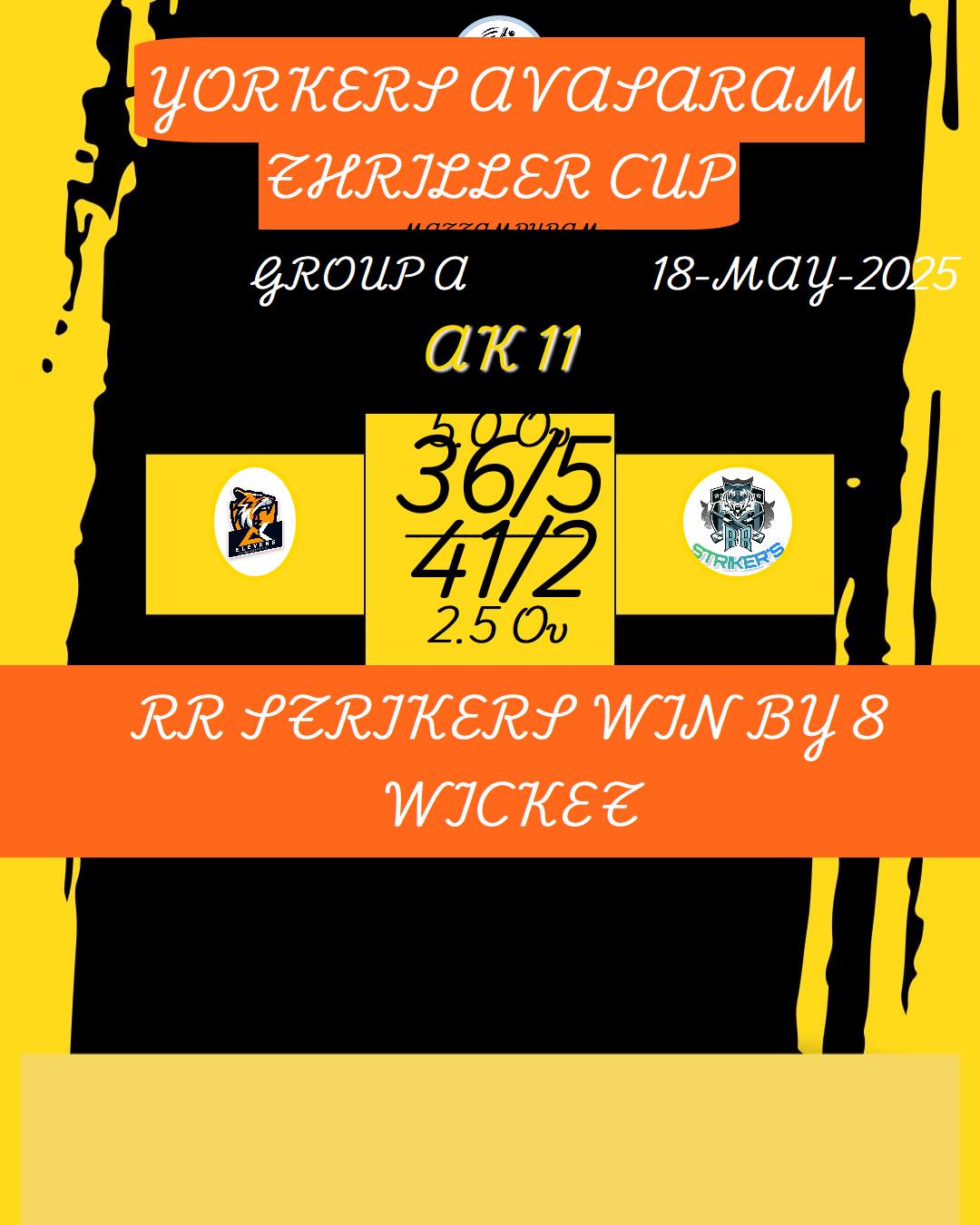 RR STRIKERS WIN BY 8 WICKET