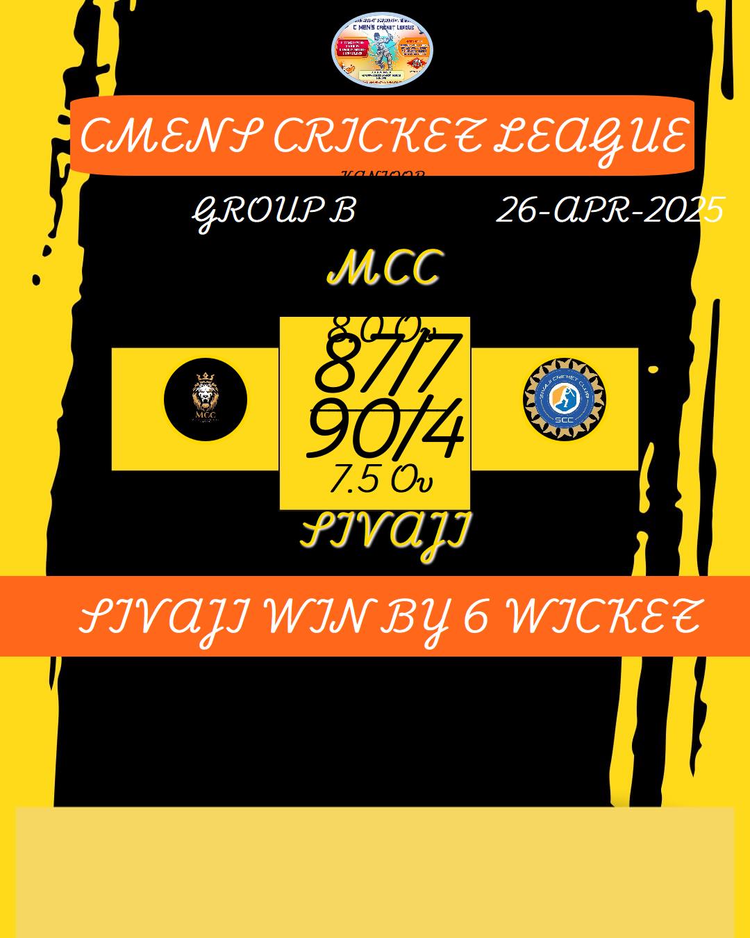 SIVAJI WIN BY 6 WICKET