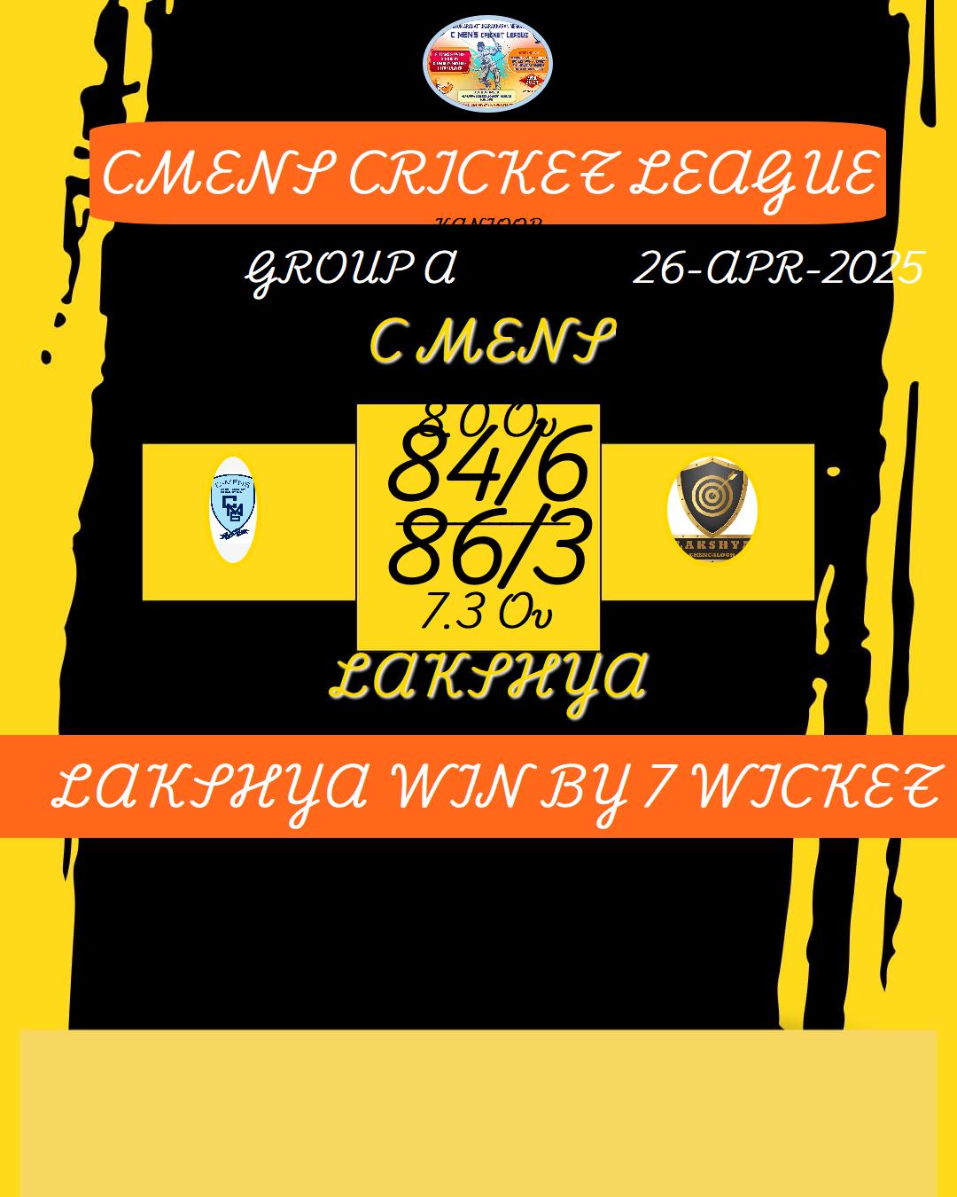 LAKSHYA WIN BY 7 WICKET