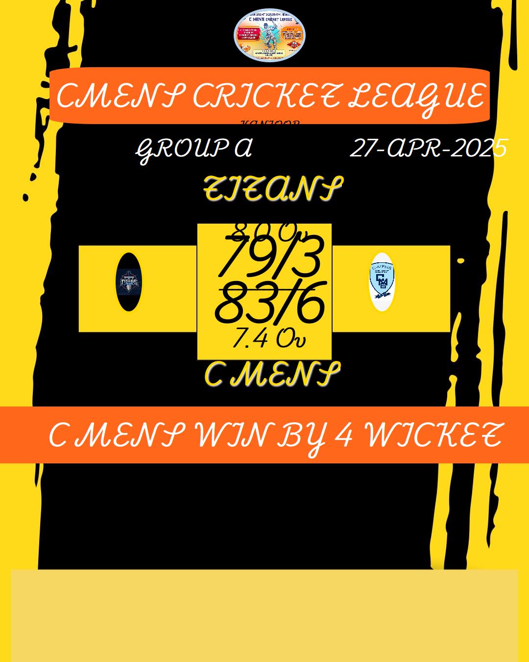 C MENS WIN BY 4 WICKET