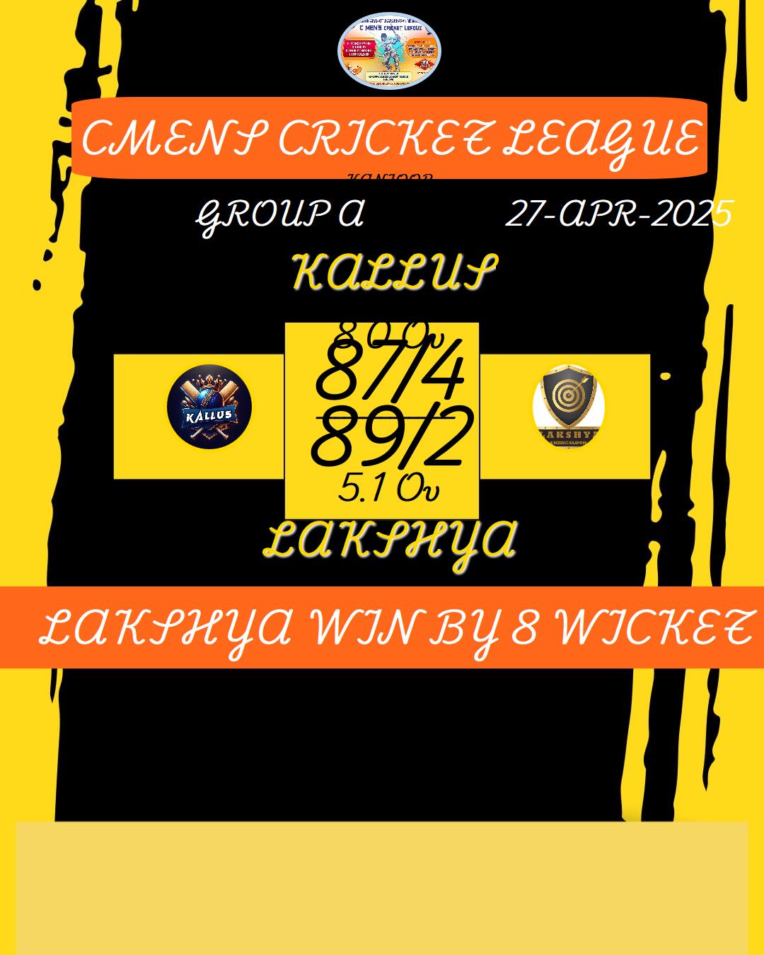 LAKSHYA WIN BY 8 WICKET