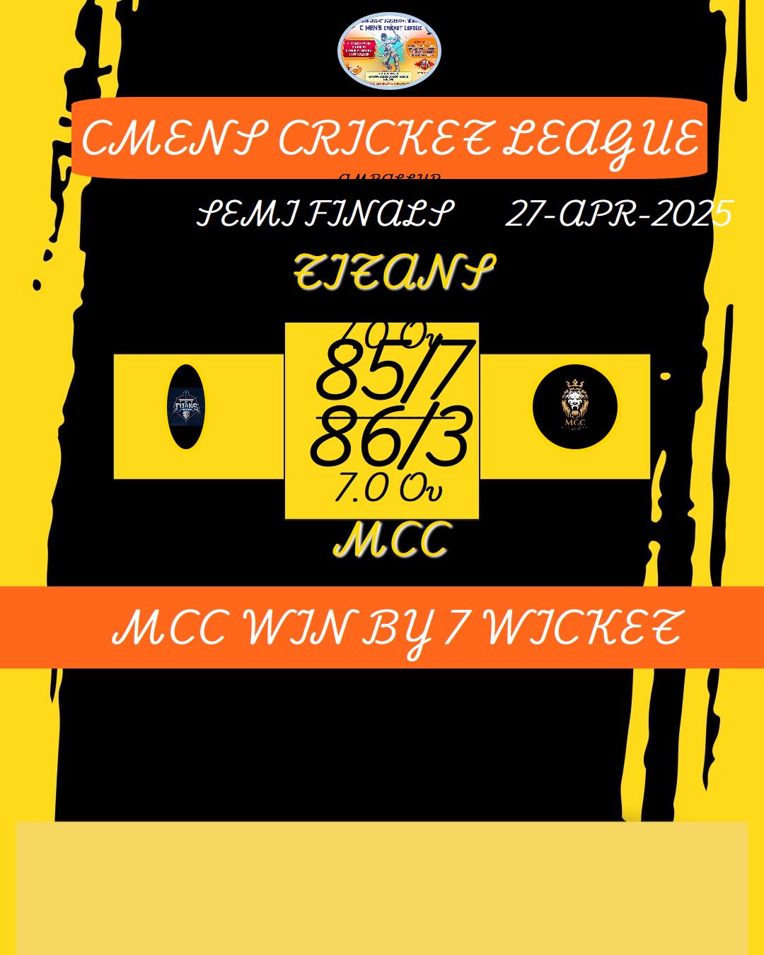 CMENS CRICKET LEAGUE MATCHES