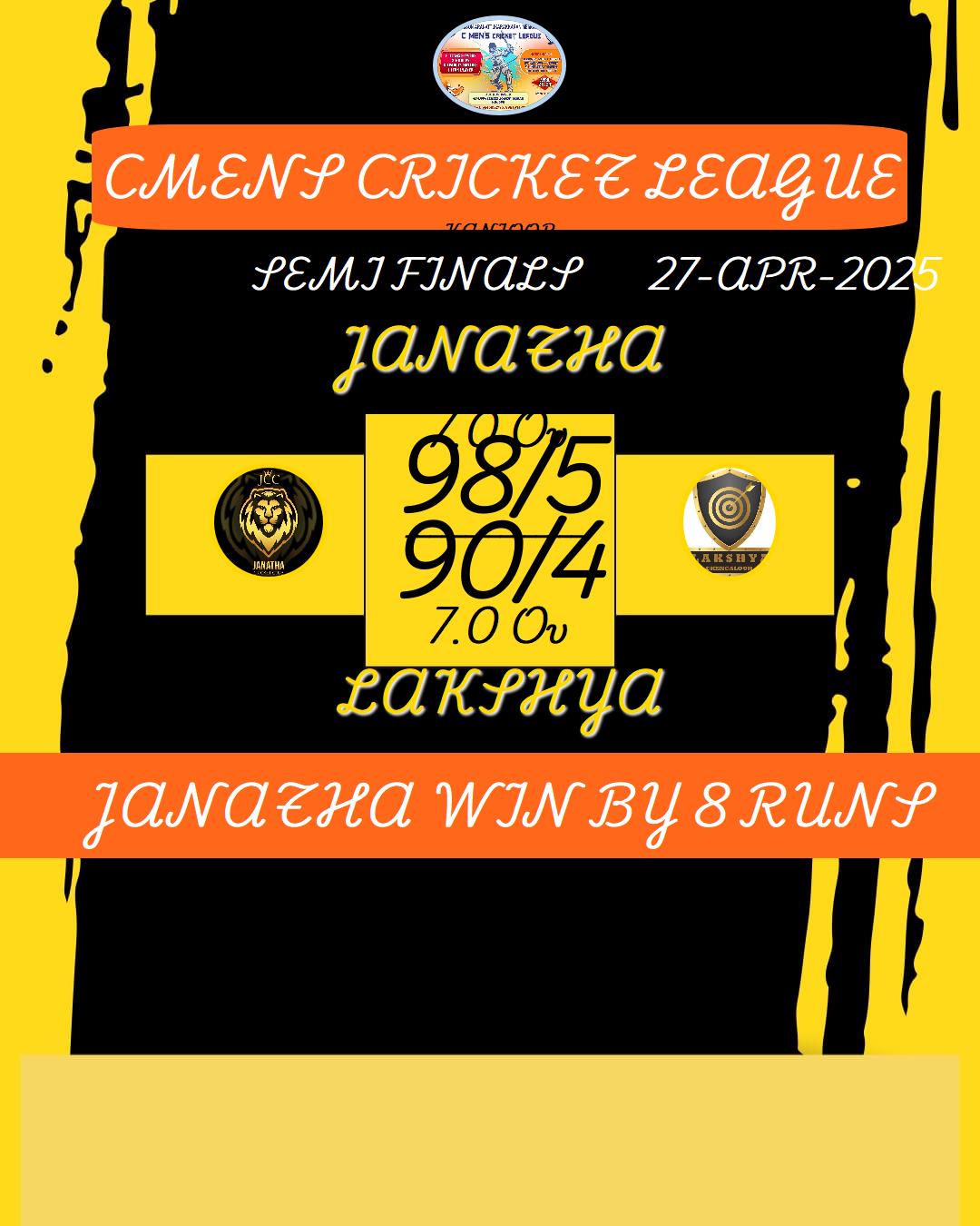 JANATHA WIN BY 8 RUNS