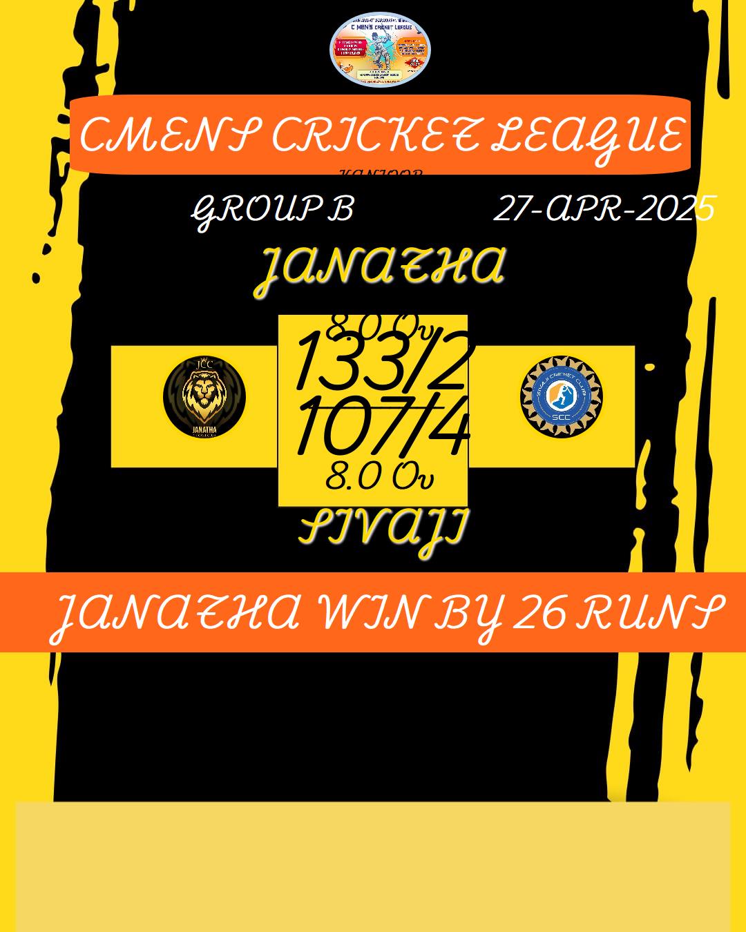 JANATHA WIN BY 26 RUNS