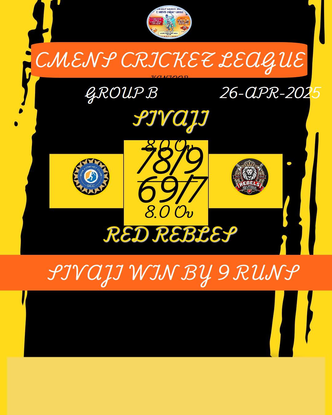 SIVAJI WIN BY 9 RUNS