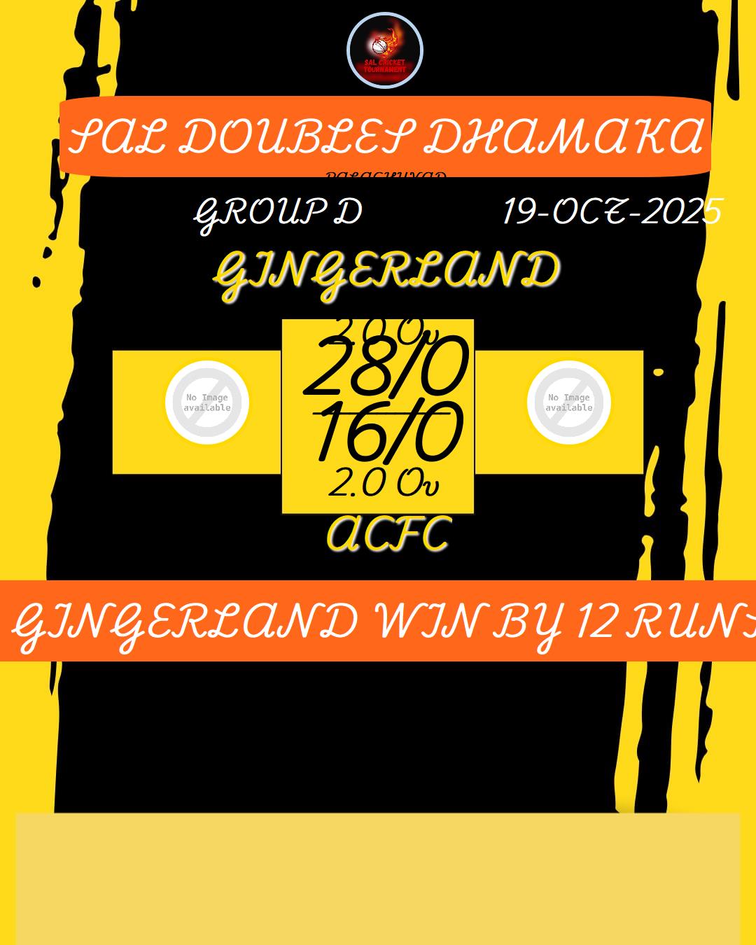 GINGERLAND WIN BY 12 RUNS
