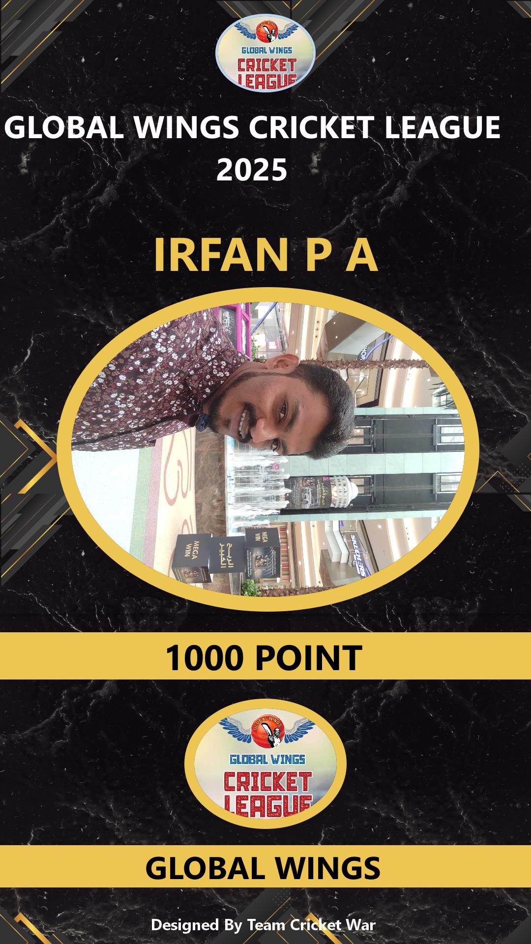 BOWLING ALLROUNDER, AGE : 38 WADAKANCHERRY Bid Amount : 1000 Team : GLOBAL WINGS Download ID Card VIEW PROFILE |