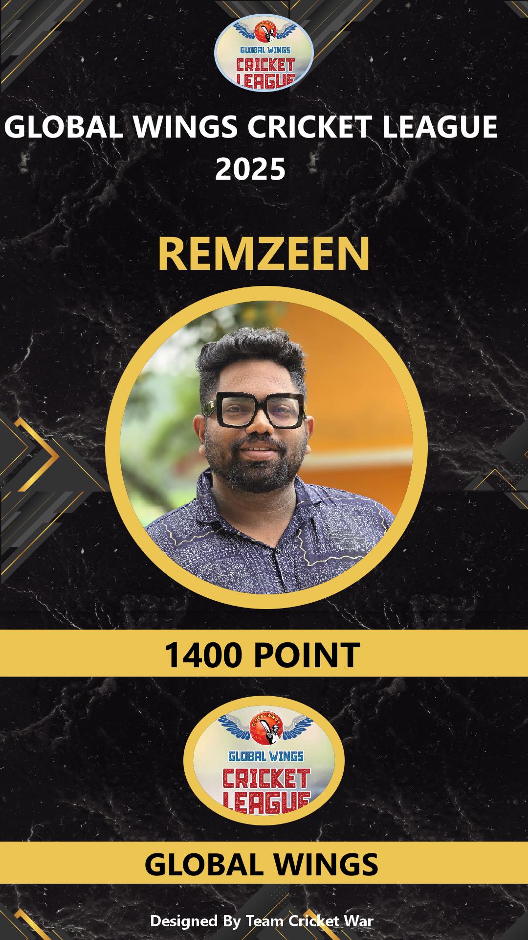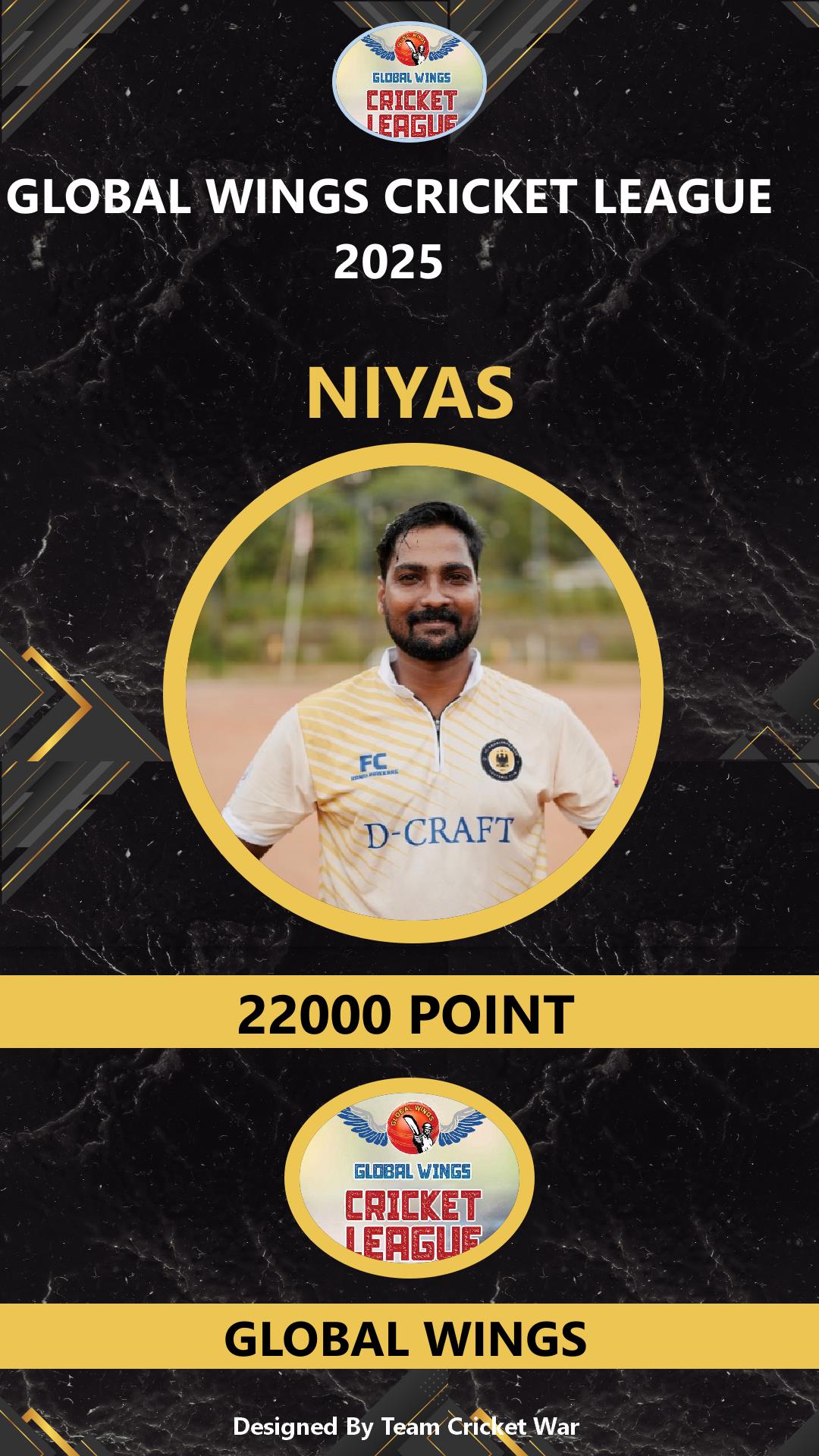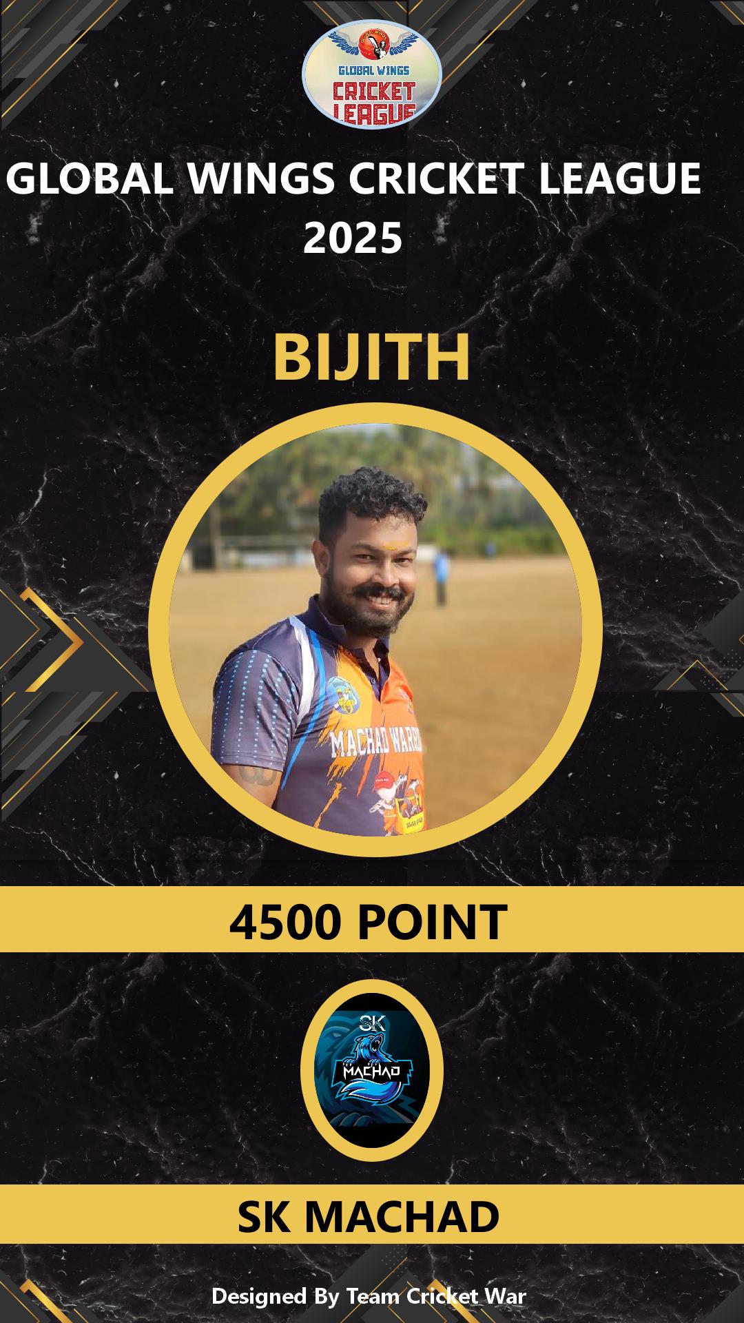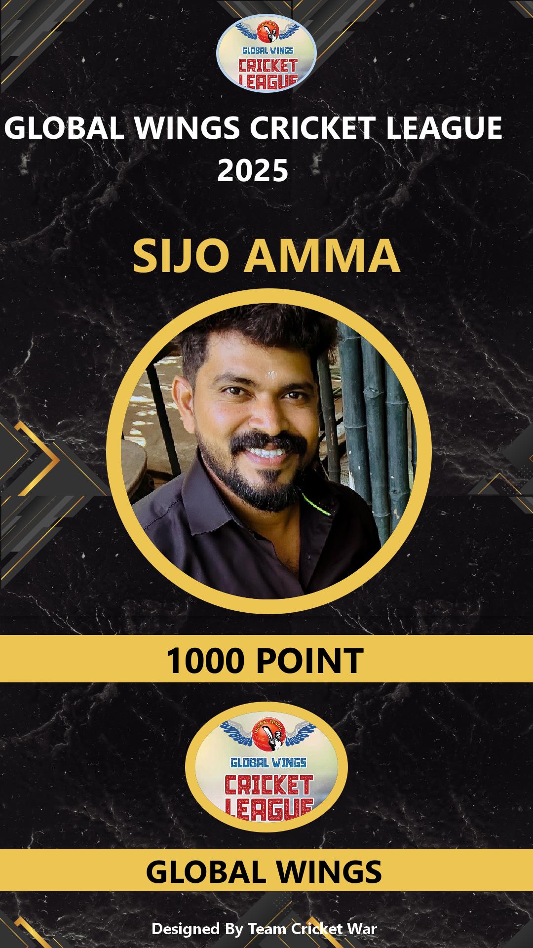 BATSMAN, AGE : 39 VETTIKKATTIRI Bid Amount : 1000 Team : GLOBAL WINGS Download ID Card VIEW PROFILE |