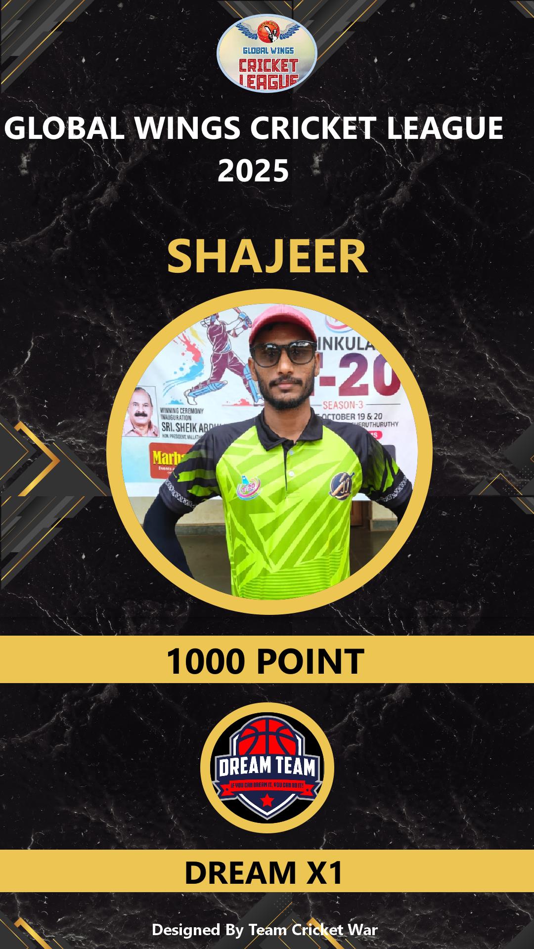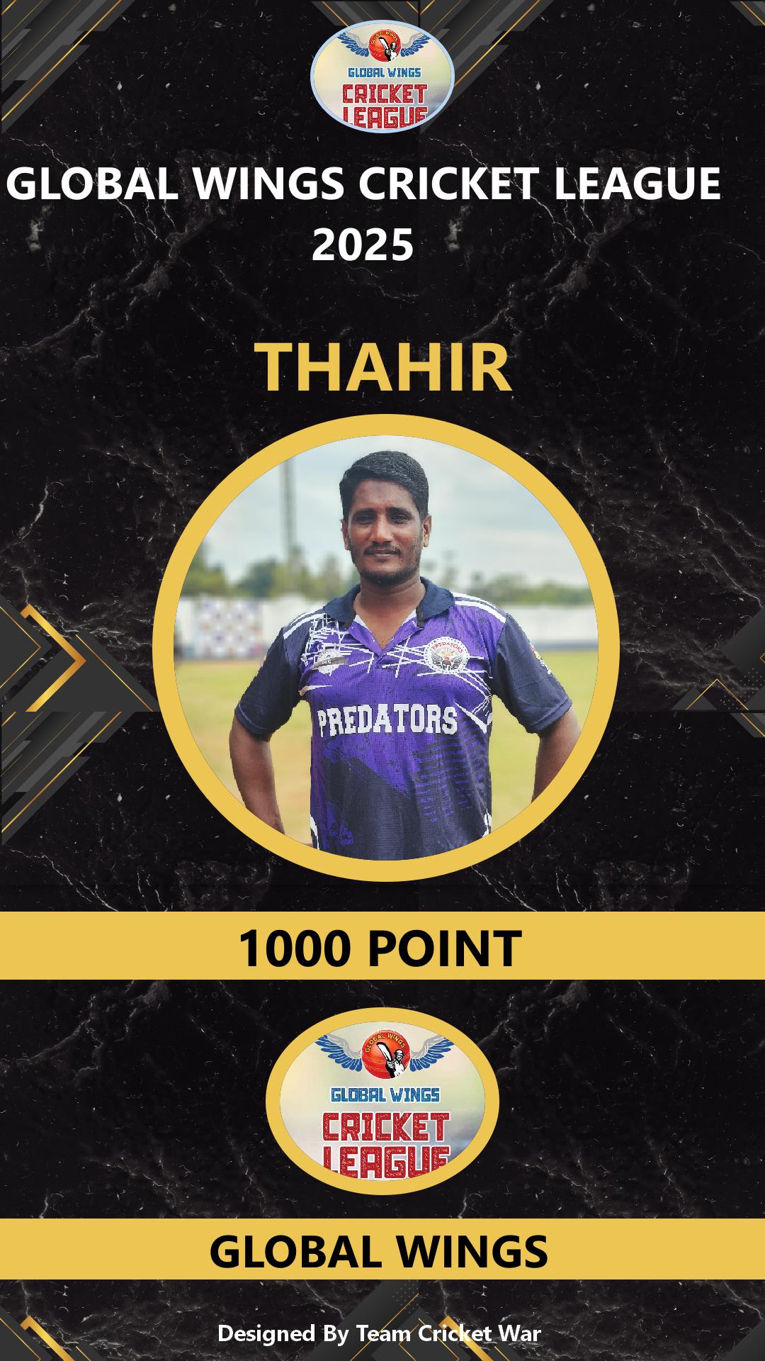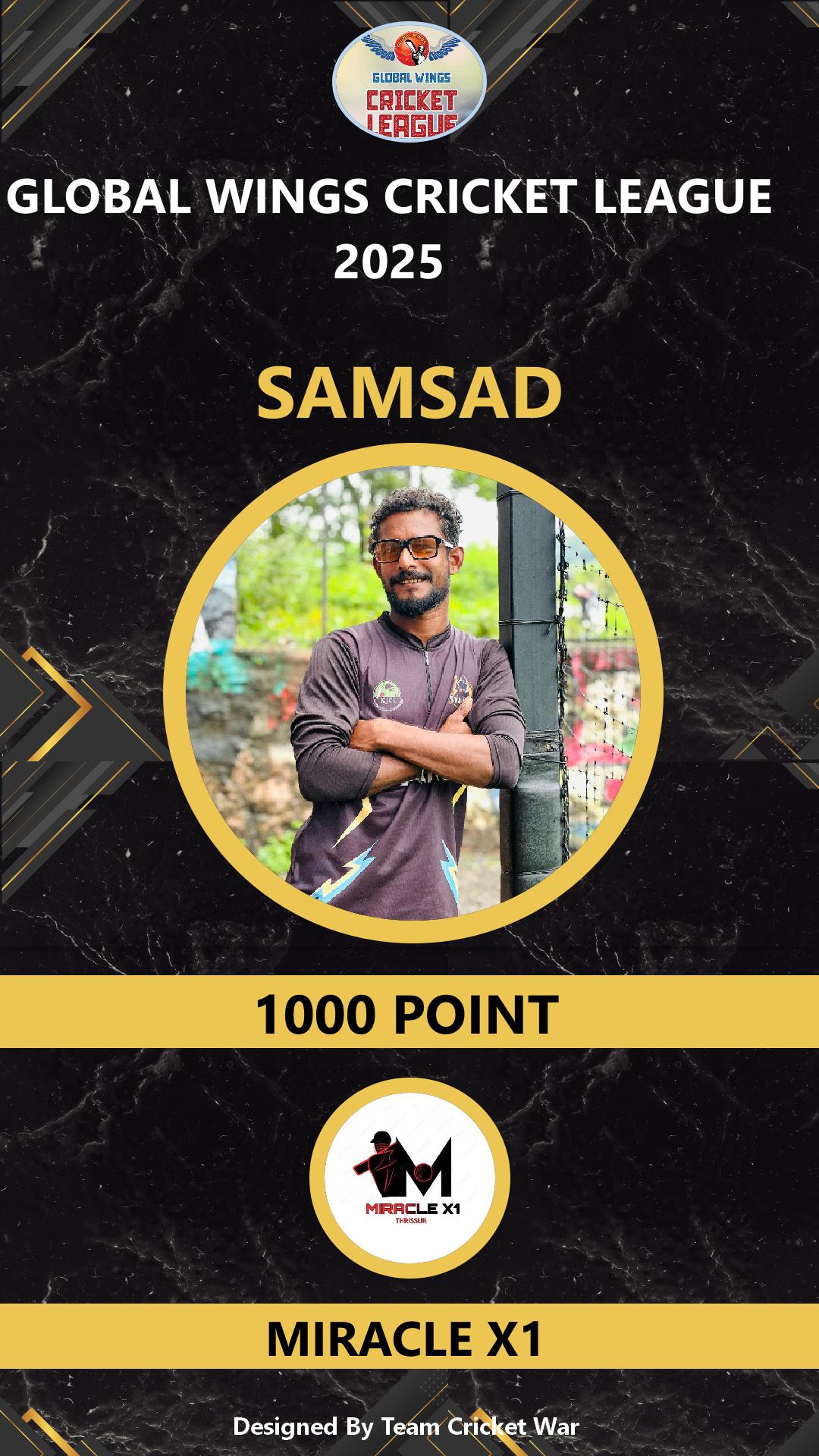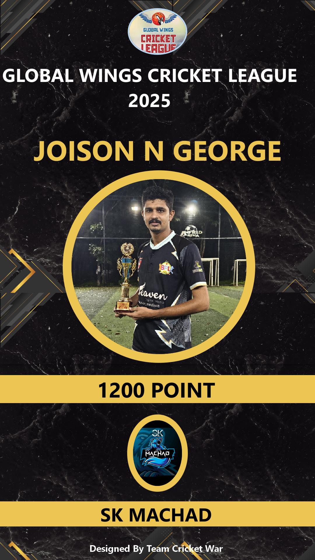 BATSMAN, AGE : 39 VETTIKKATTIRI Bid Amount : 1000 Team : GLOBAL WINGS Download ID Card VIEW PROFILE |
