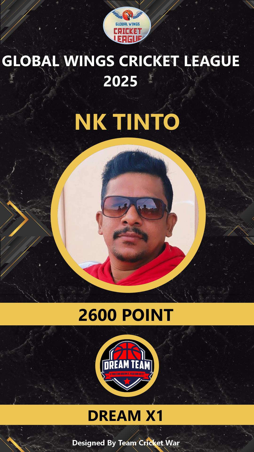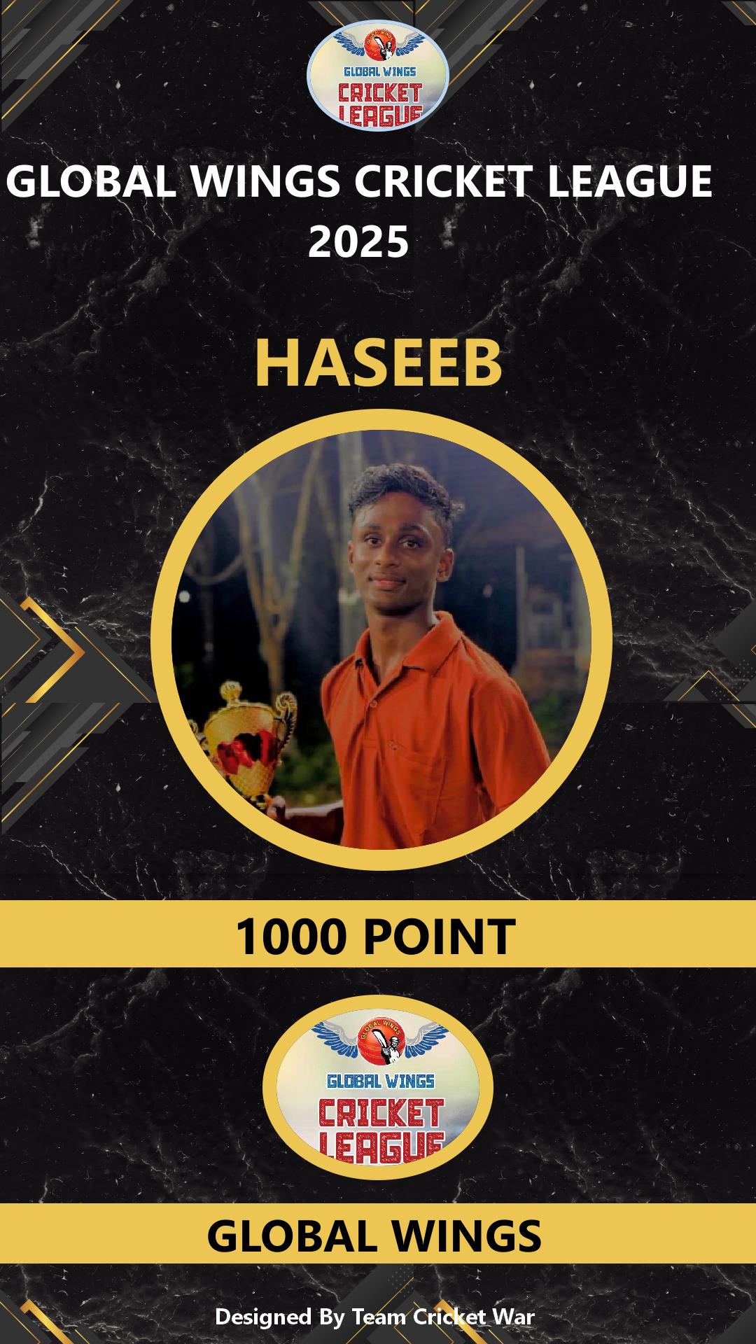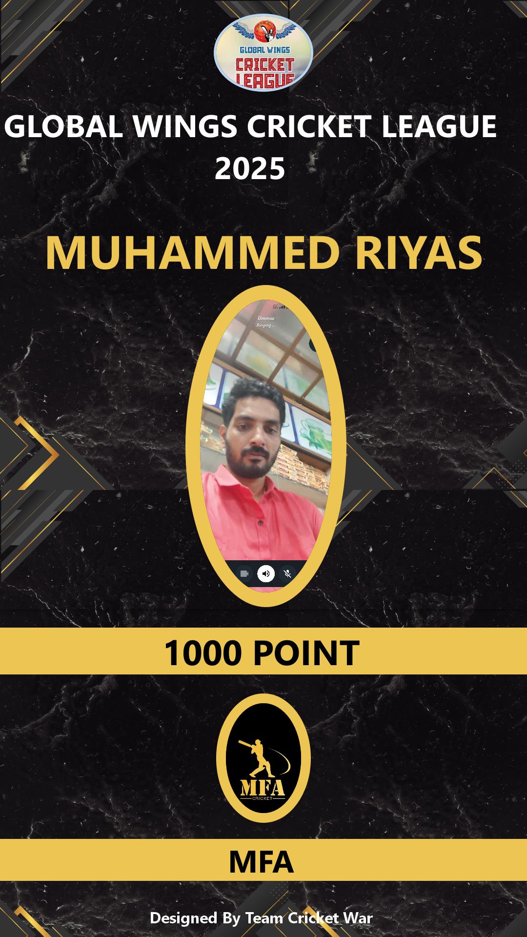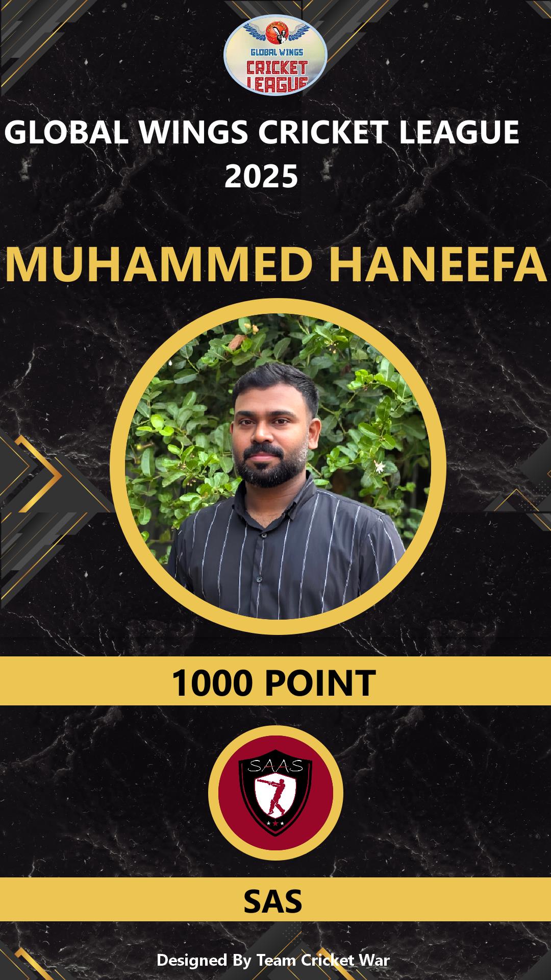 BATSMAN, AGE : 39 VETTIKKATTIRI Bid Amount : 1000 Team : GLOBAL WINGS Download ID Card VIEW PROFILE |