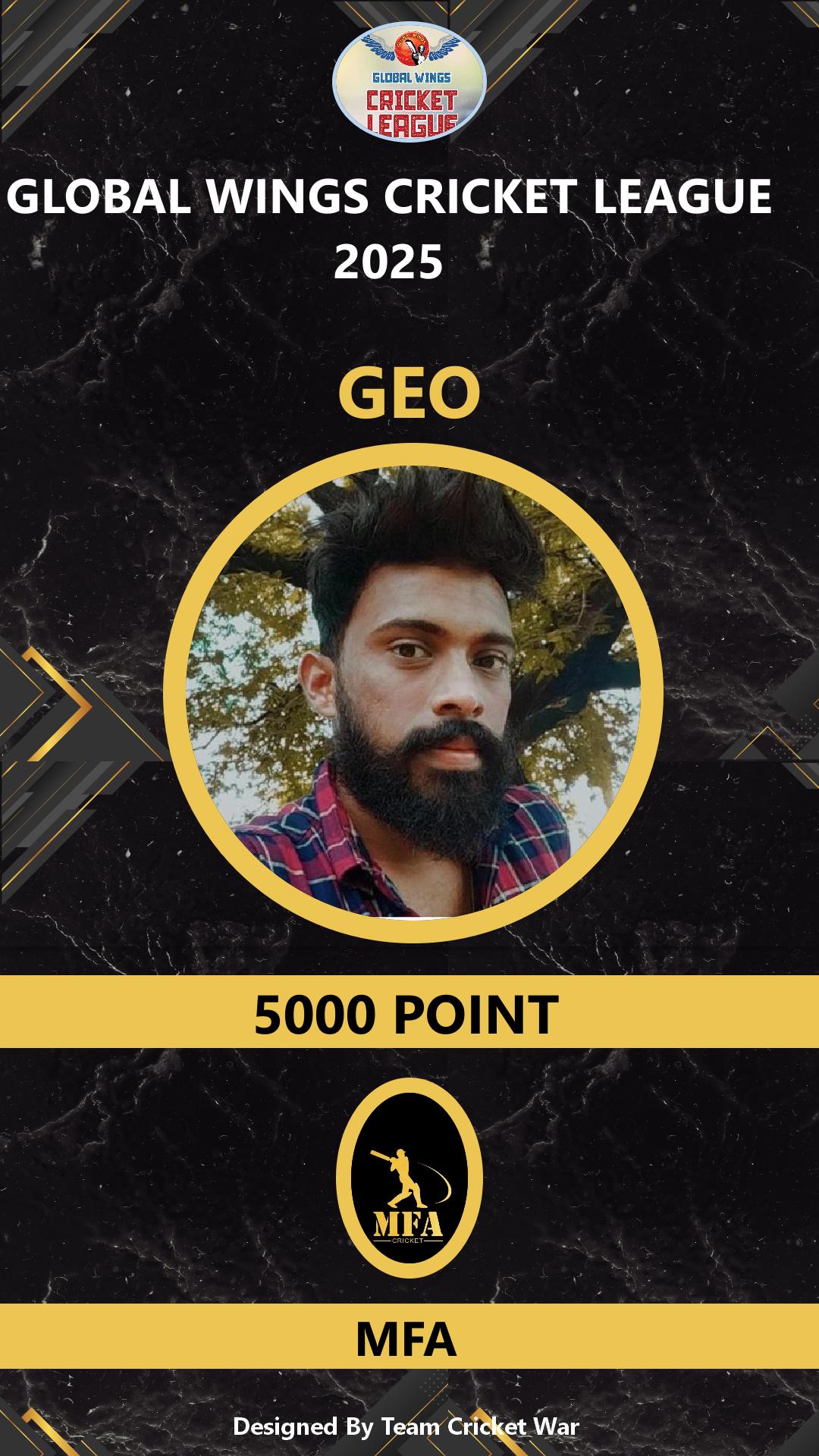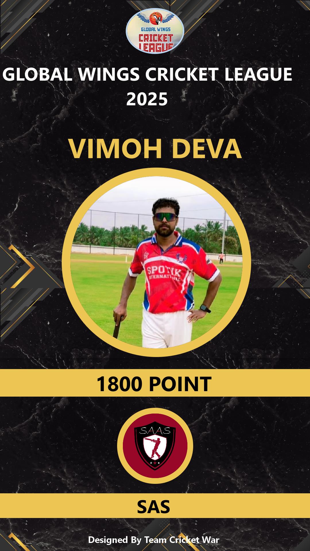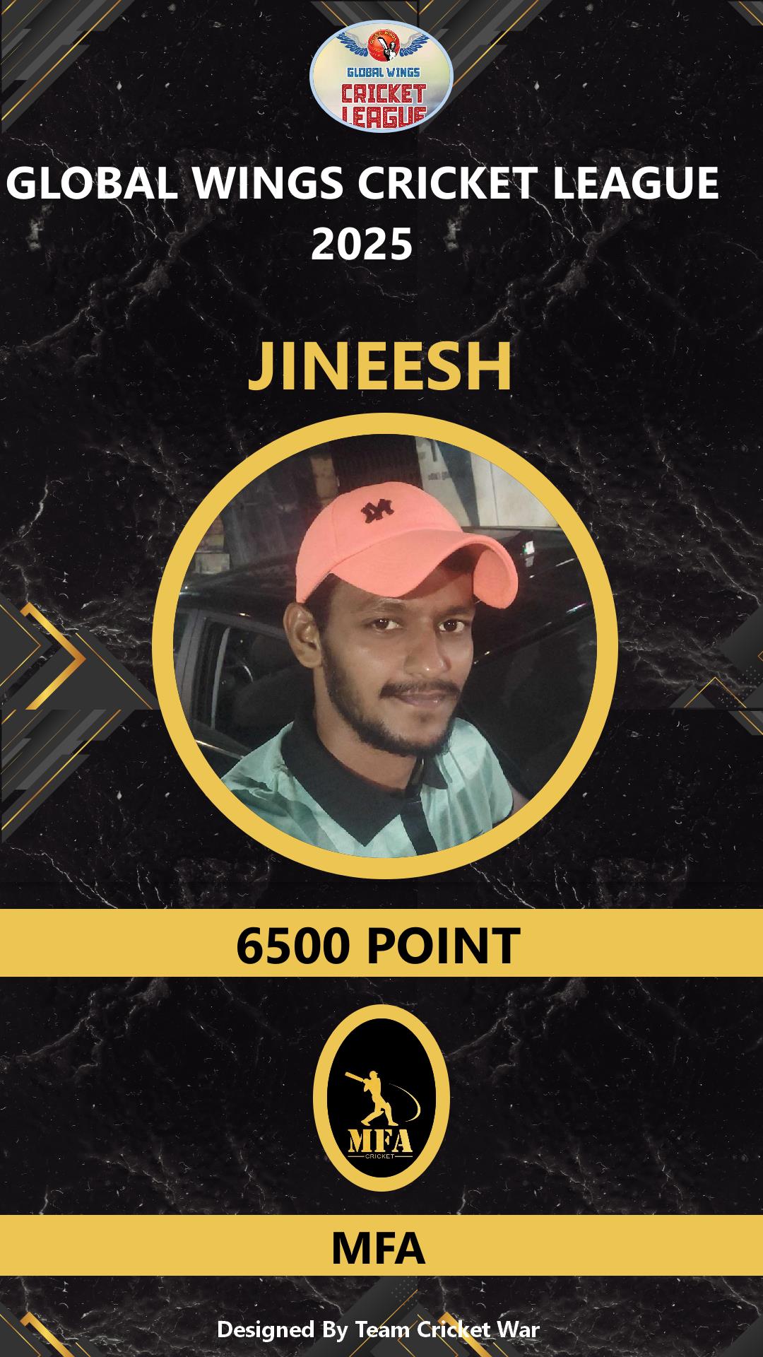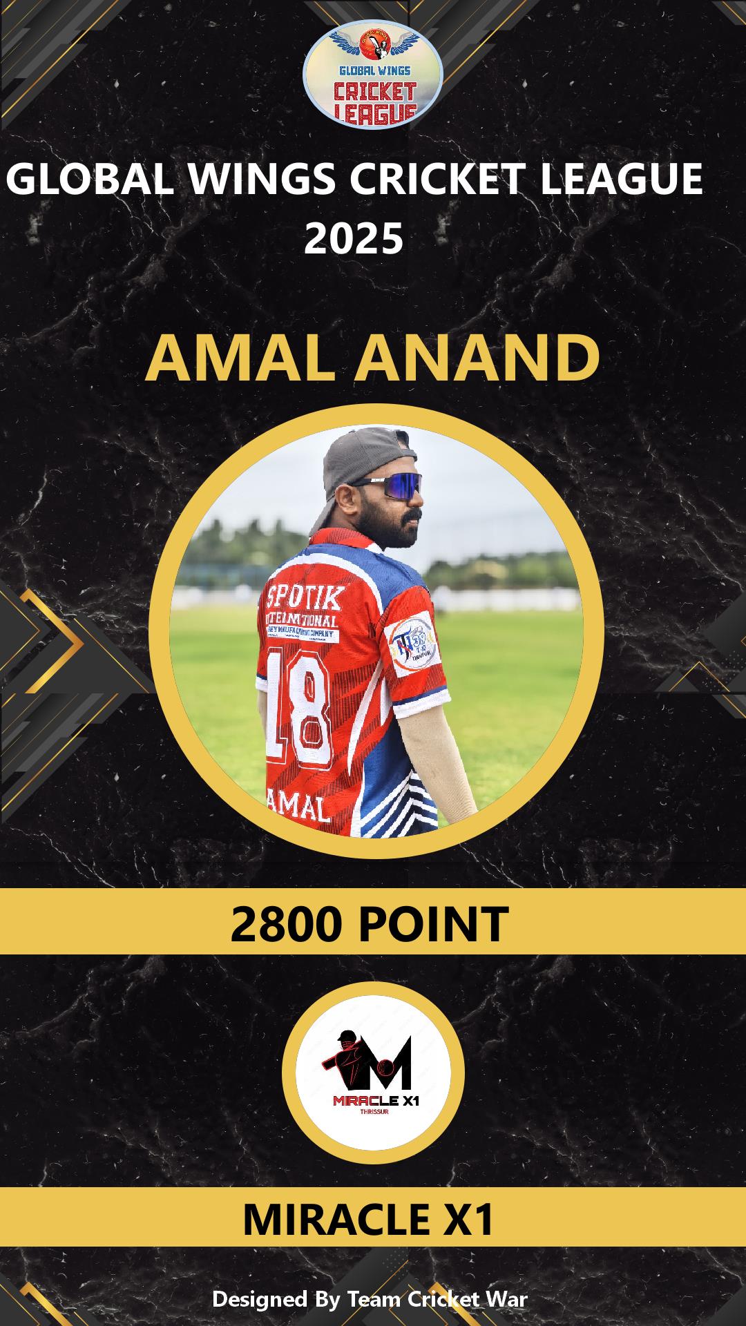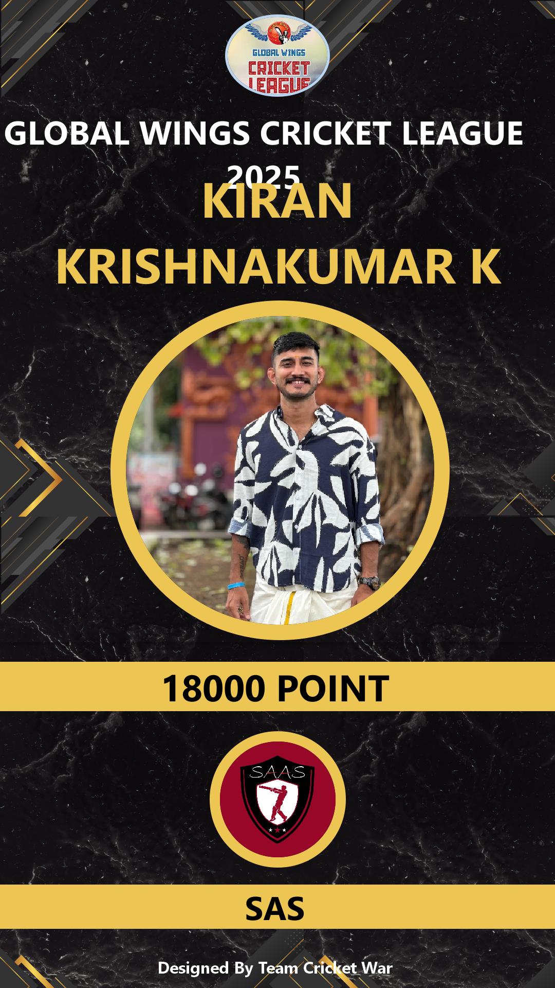 BATSMAN, AGE : 28 ENKAKKAD Bid Amount : 1400 Team : GLOBAL WINGS Download ID Card VIEW PROFILE |