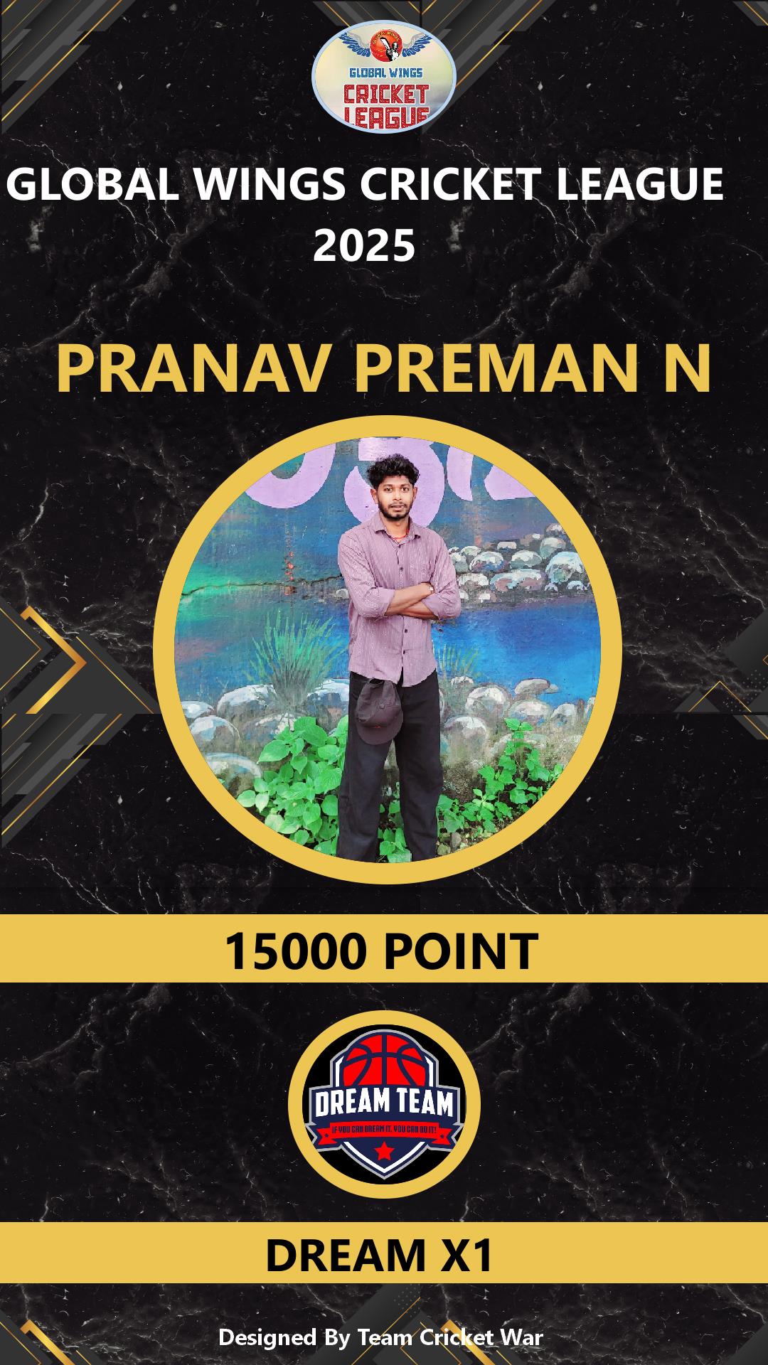 ALLROUNDER, AGE : 33 KUNDANNUR Bid Amount : 1000 Team : DREAM X1 Download ID Card |