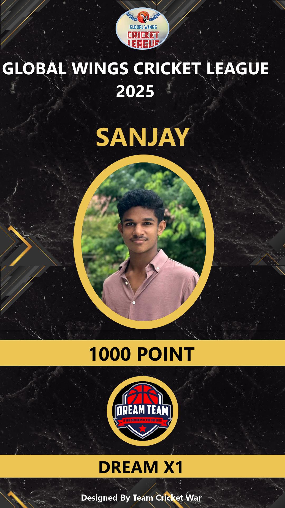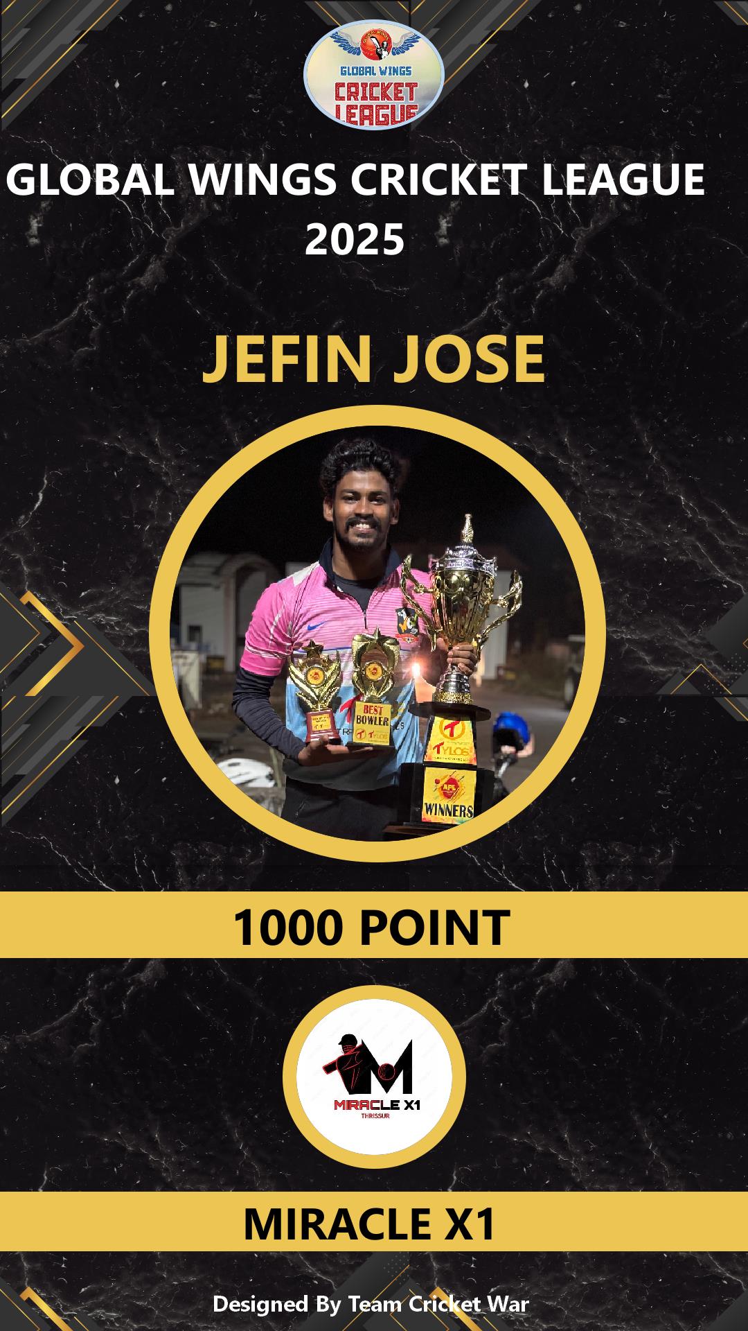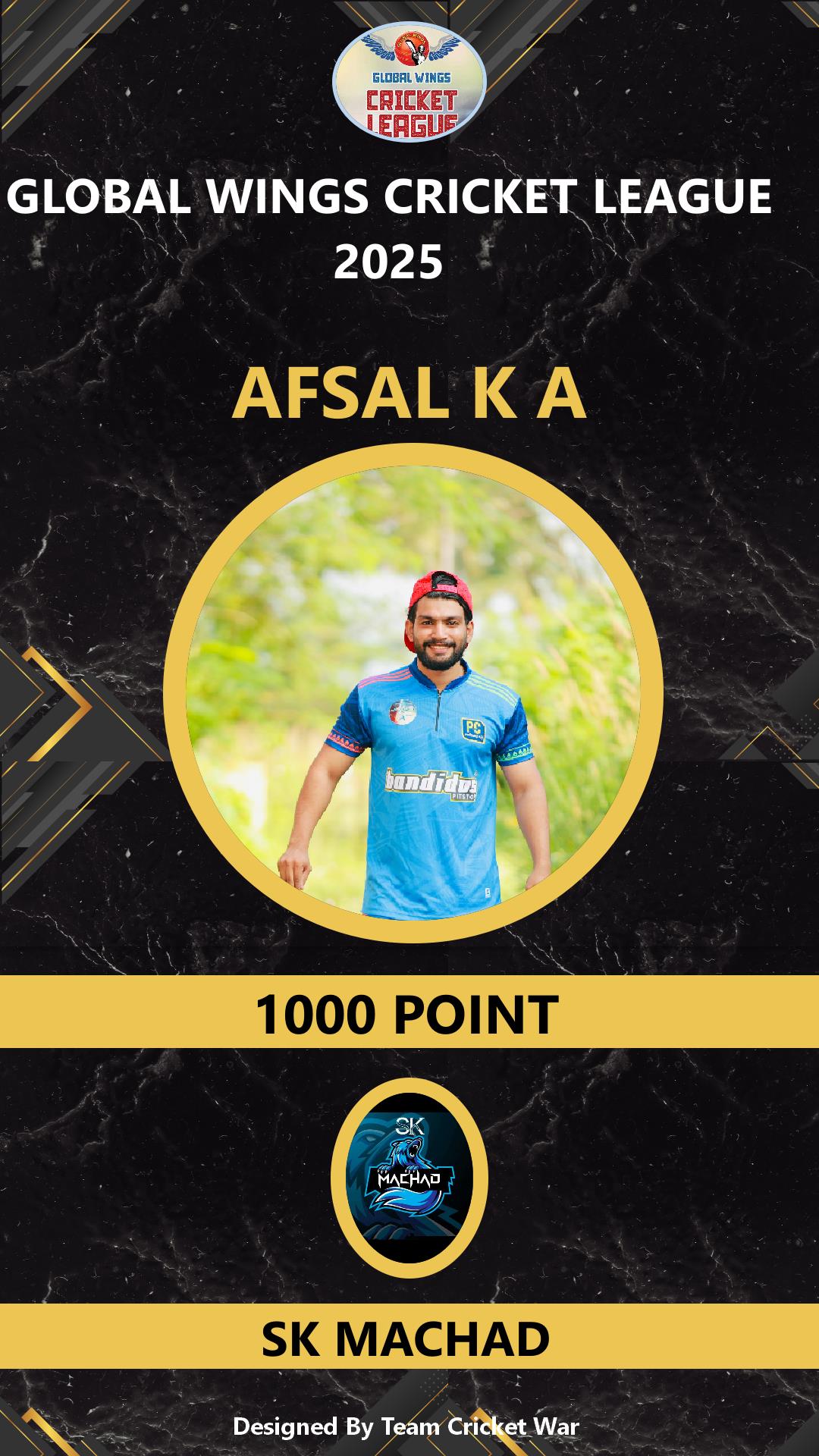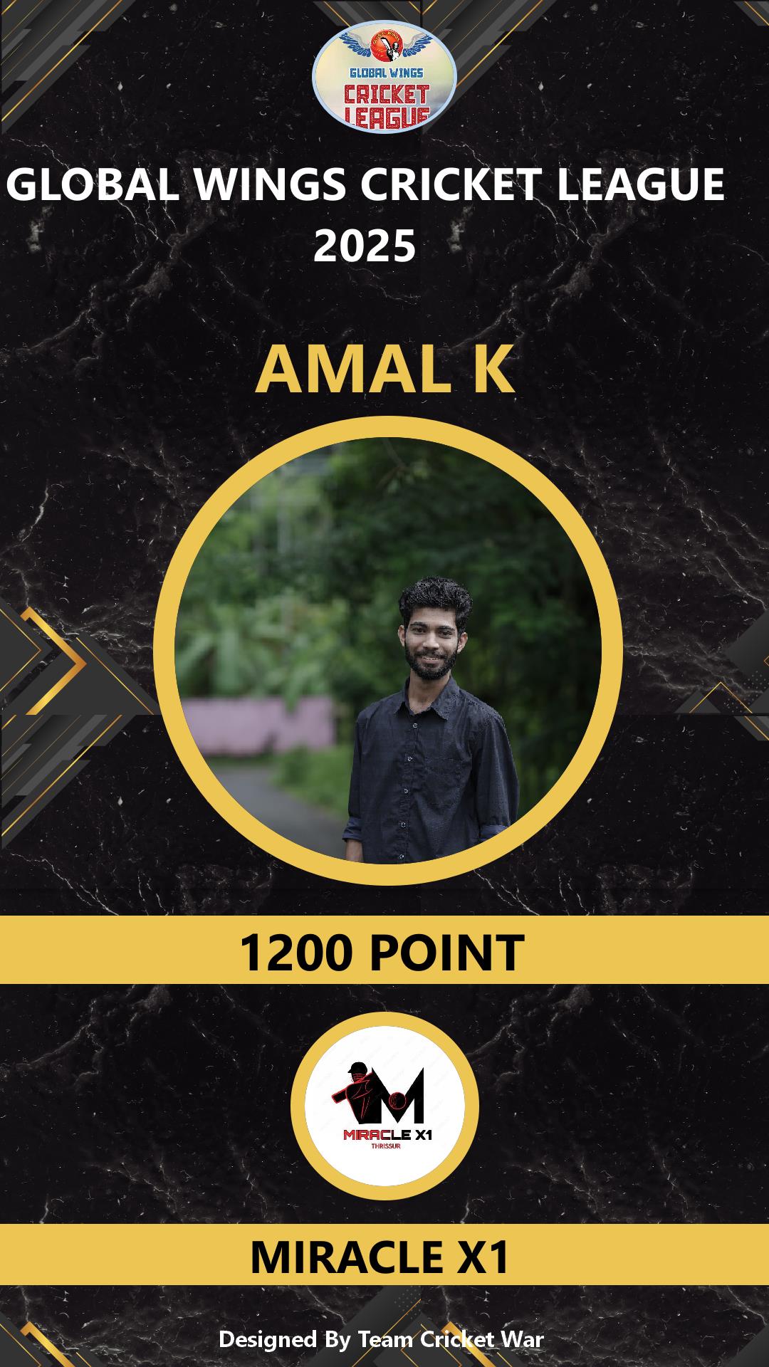 ALLROUNDER, AGE : 19 WADAKKANCHEY Bid Amount : 1000 Team : GLOBAL WINGS Download ID Card VIEW PROFILE |