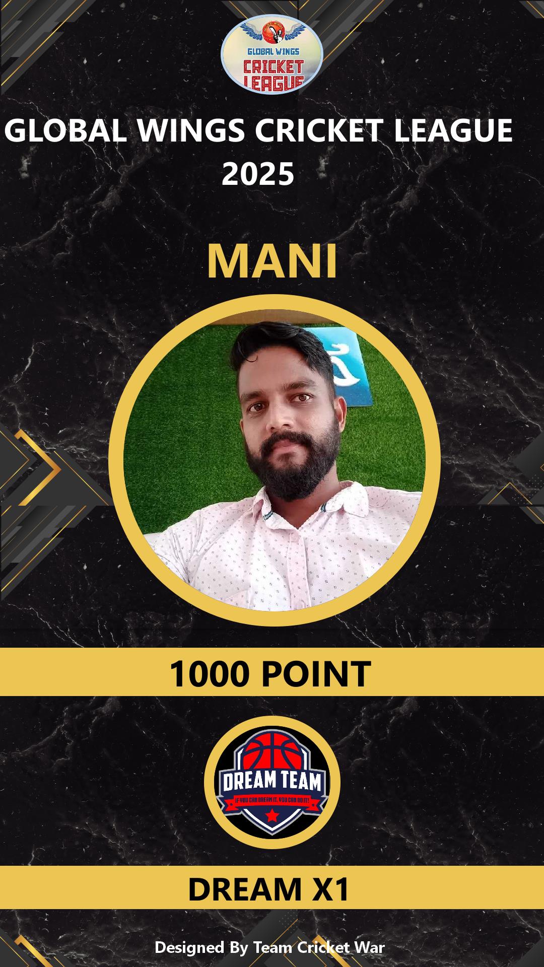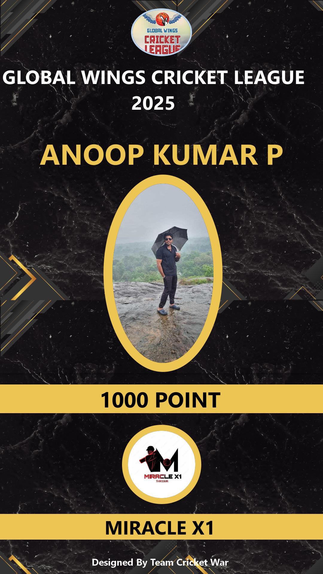 BATSMAN, AGE : 35 DESAMANGALAM Bid Amount : 1000 Team : MIRACLE X1 Download ID Card VIEW PROFILE |