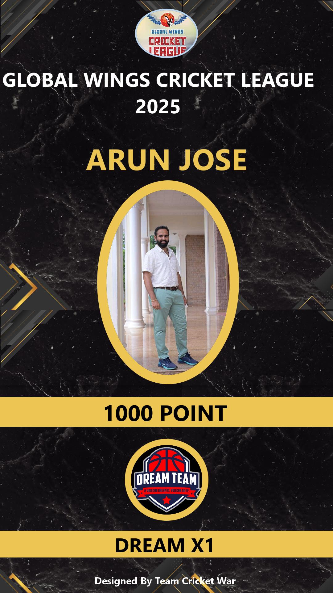 ALLROUNDER, AGE : 33 WADAKANCHERY Bid Amount : 1000 Team : GLOBAL WINGS Download ID Card VIEW PROFILE |