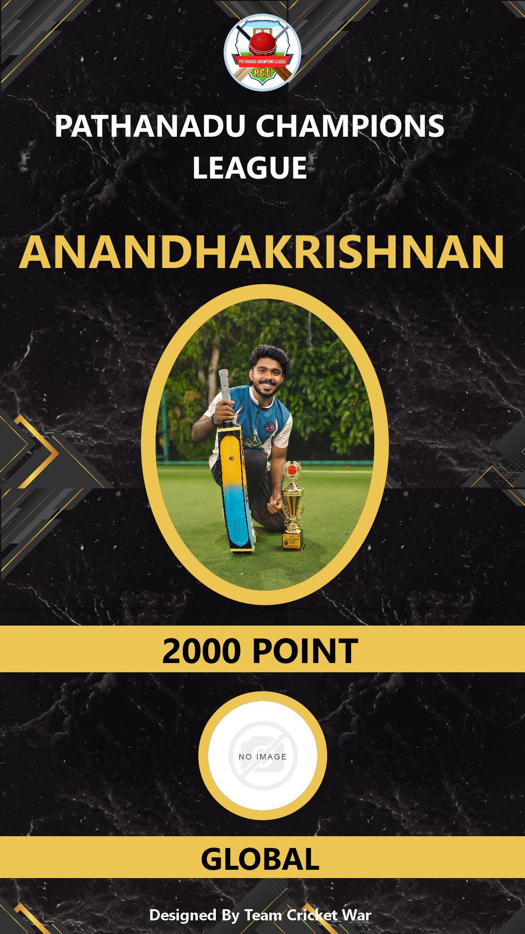 BATTING ALLROUNDER, AGE : 36 PATHANADU VIEW PROFILE |