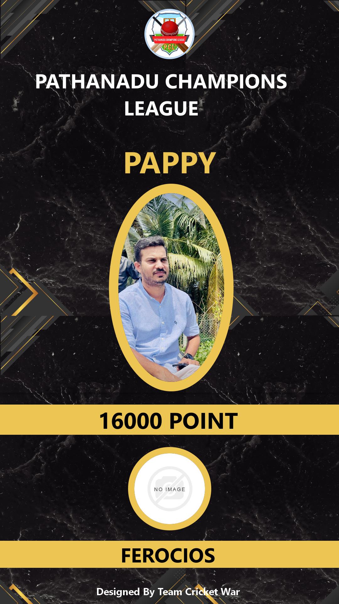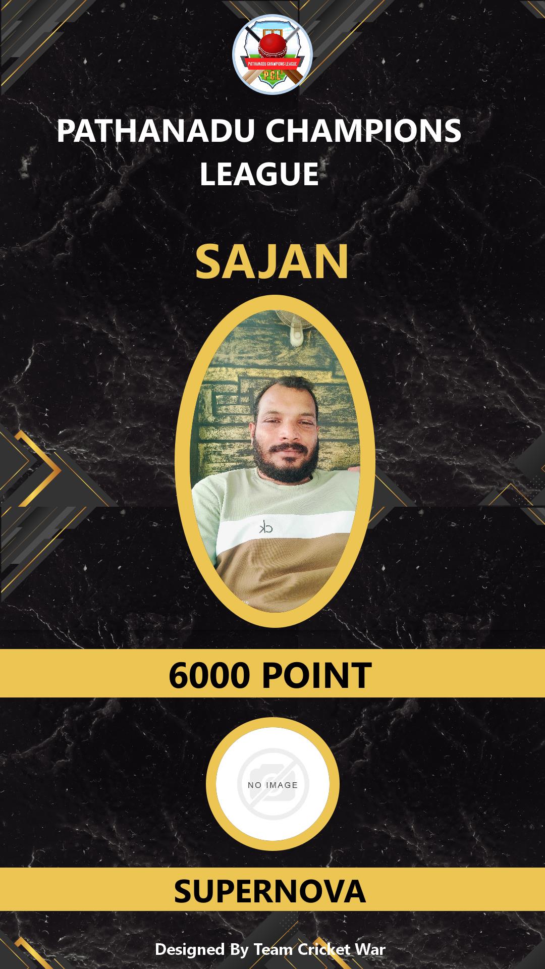 ALLROUNDER, AGE : 41 PATHANADU Bid Amount : 6000 Team : SUPERNOVA Download ID Card VIEW PROFILE |