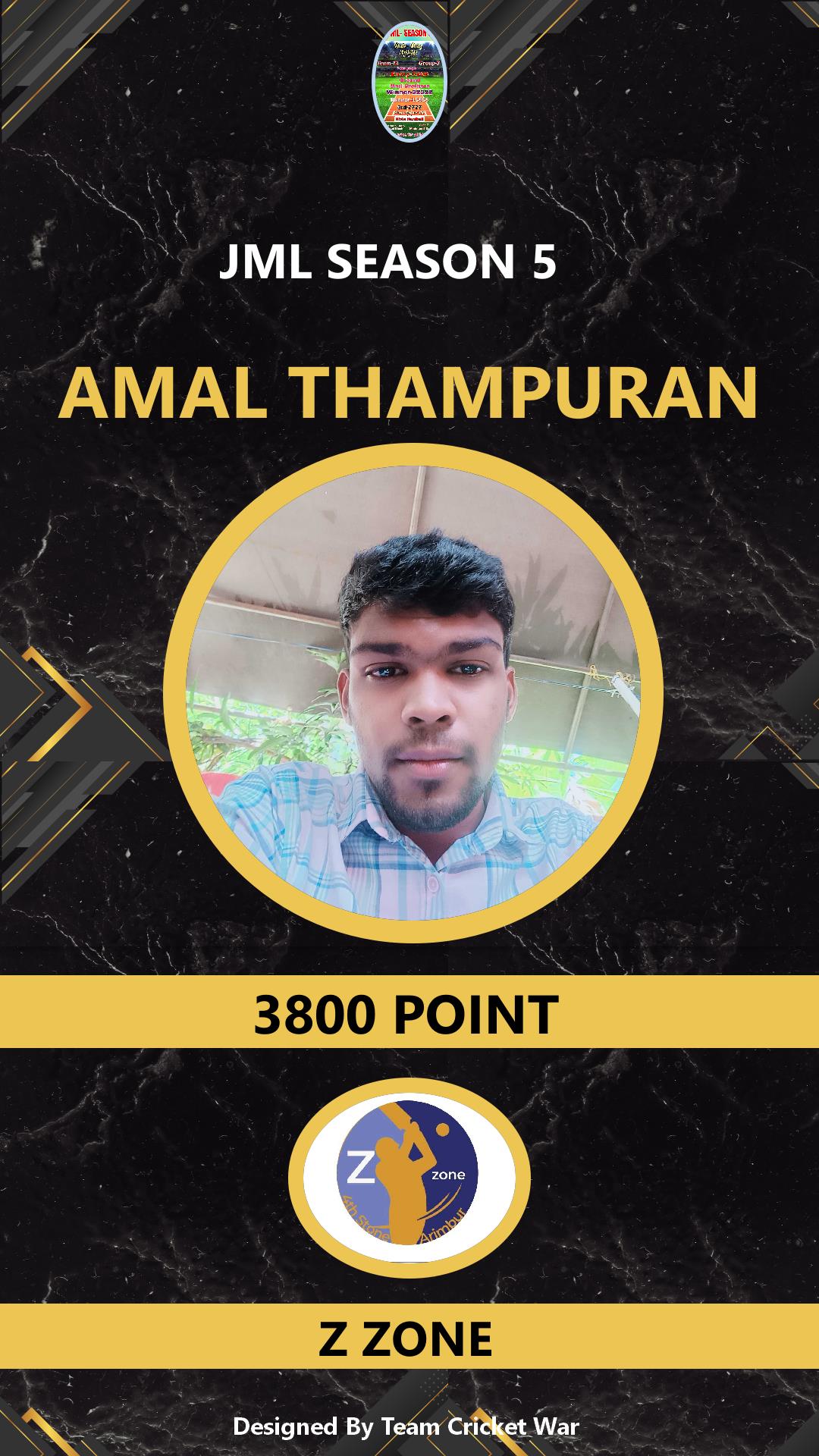 BATTING ALLROUNDER, AGE : 27 ARIMPUR Bid Amount : 1000 Team : Z ZONE Download ID Card VIEW PROFILE |