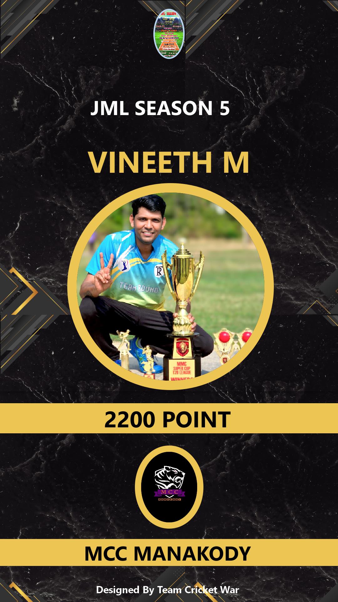 ALLROUNDER, AGE : 20 KANDASSANKADAVU Bid Amount : 2200 Team : SPEARHEADS Download ID Card VIEW PROFILE |