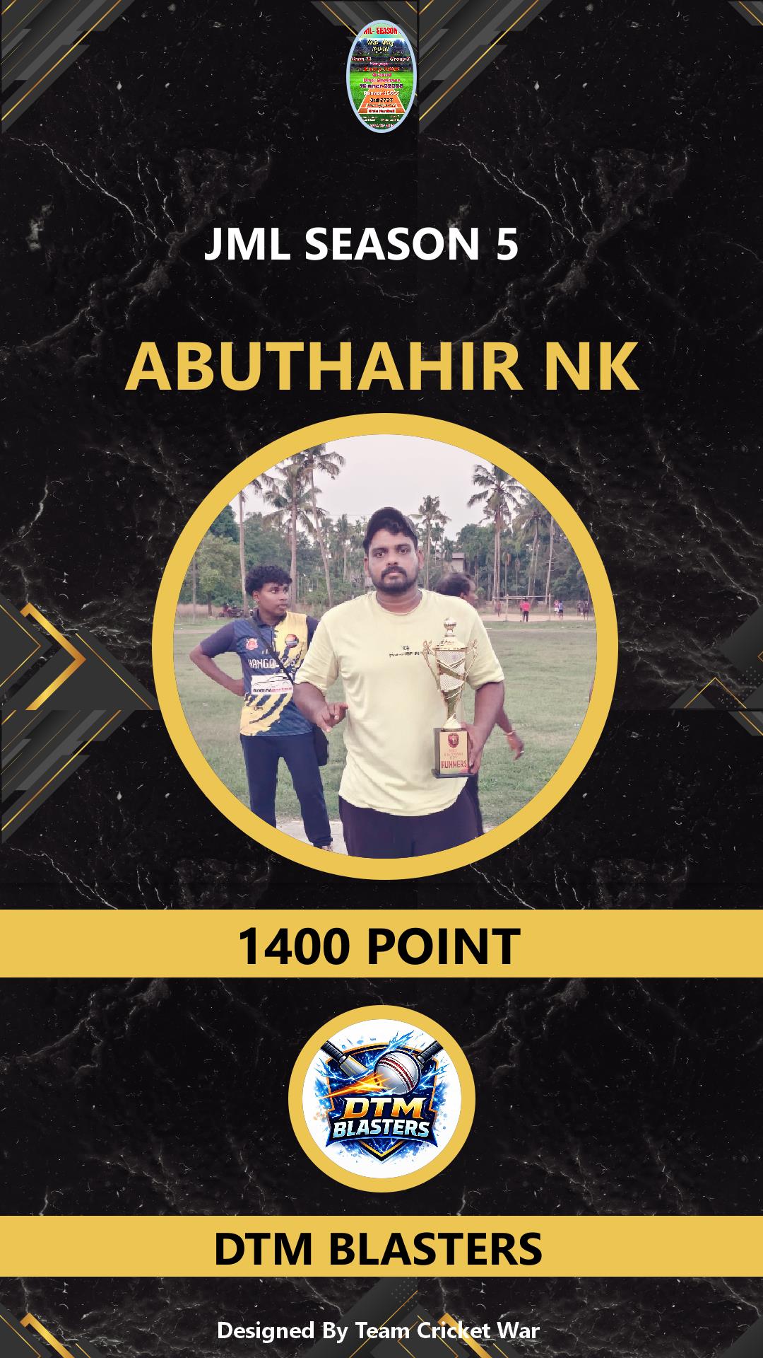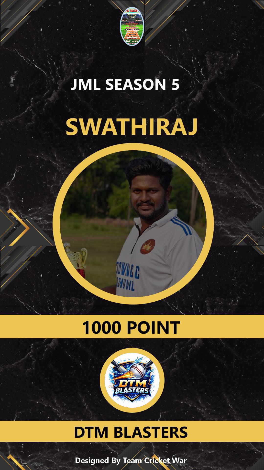 ALLROUNDER, AGE : 36 THANNIYAM Bid Amount : 1400 Team : DTM BLASTERS Download ID Card VIEW PROFILE |